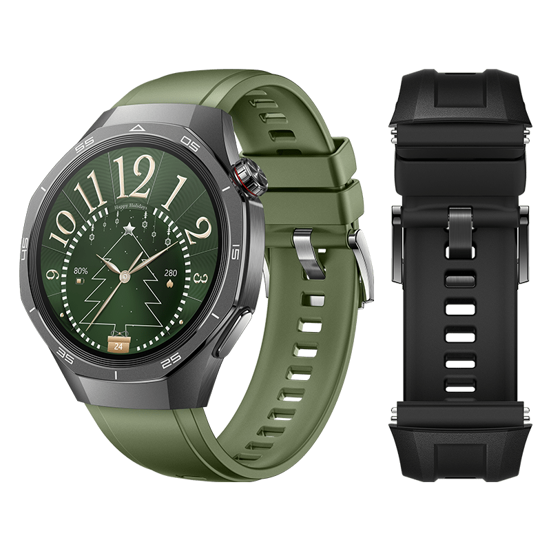华为推出节日版 Watch GT 5和 手表 GT 5 Pro和 Watch GT 5 Pro。这两款新手表是继 9 月份推出原版手表 九月.Watch GT 5 41 毫米表款为红色,Watch GT 5 46 毫米表款和 Watch GT 5 Pro 表款为绿色。客户可为每款手表选择不同的手表套装。