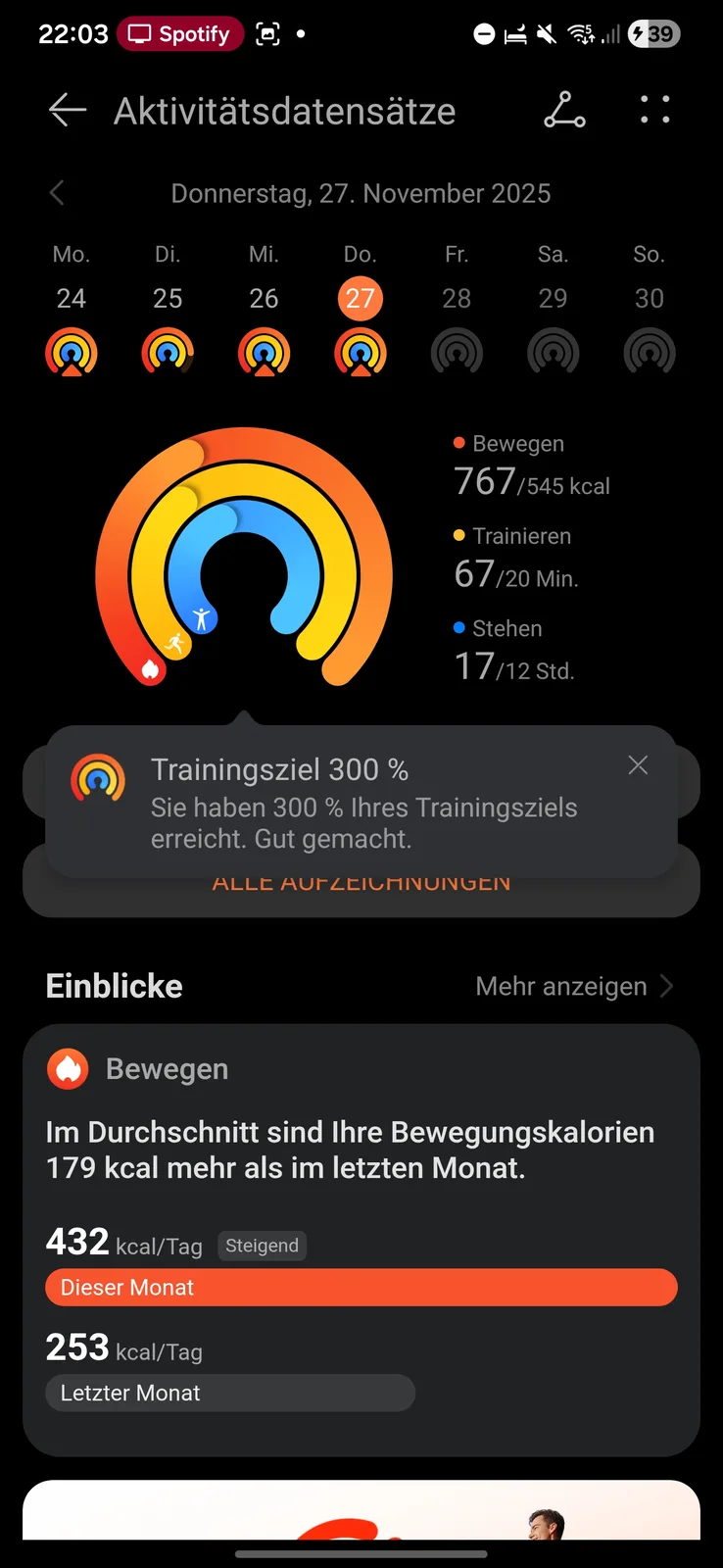 我们的结果与华为的说法相符。在没有 eSIM 卡的情况下,我们在关闭 AoD 的情况下使用了五天,在打开 AoD 的情况下使用了四天。如果在没有配对智能手机的情况下使用手表,并在运动时大量佩戴,电池续航时间会相应减少。