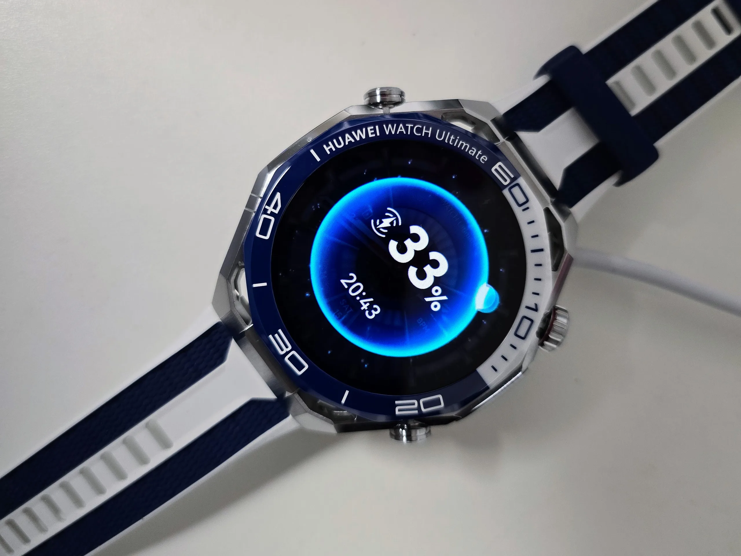 华为内置 867 毫安时电池。通过 Qi 电池板进行无线充电。使用Anker 355 电源,Watch Ultimate 2 在 40 分钟内从 3% 充至 50%,充满电大约需要 90 分钟。