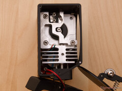 Wizmaker P1的打印头包含热端和挤出机。在挤出机的正上方还安装了一个长丝传感器。因此,长丝从传感器到喷嘴的距离非常短。长丝驱动轮的直径相当小,所以推进力很强,尽管这里没有齿轮箱来放大步进电机的扭矩。Wizmaker P1的打印头有一个引人注目的集成设计。这里的所有部件都隐藏在圆形盖子后面,可以通过顶部的小按钮轻松打开。挤出机的弹簧压力轮也被整合到该门中。因此,当盖子打开时,人们可以看到灯丝路径,并发现潜在的问题。