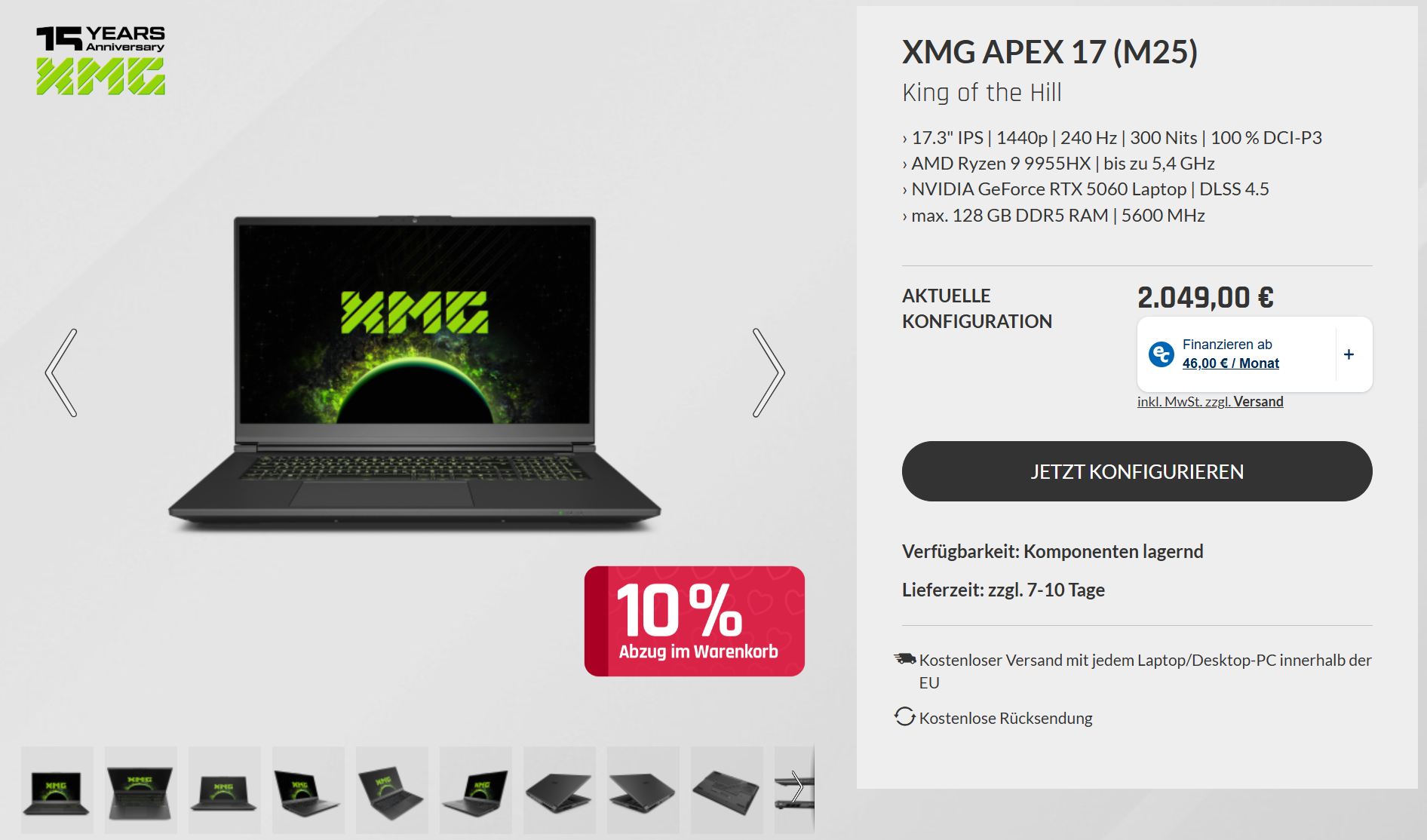 几天前,当我们完成对 Apex 17 的评测时,这款笔记本电脑在 XMG 的官方 bestware.com 商店中的售价仍为 1899 欧元。在我们的 Reddit 频道上的用户评论说,这个价格已经太高了,而且还有更实惠的替代品。