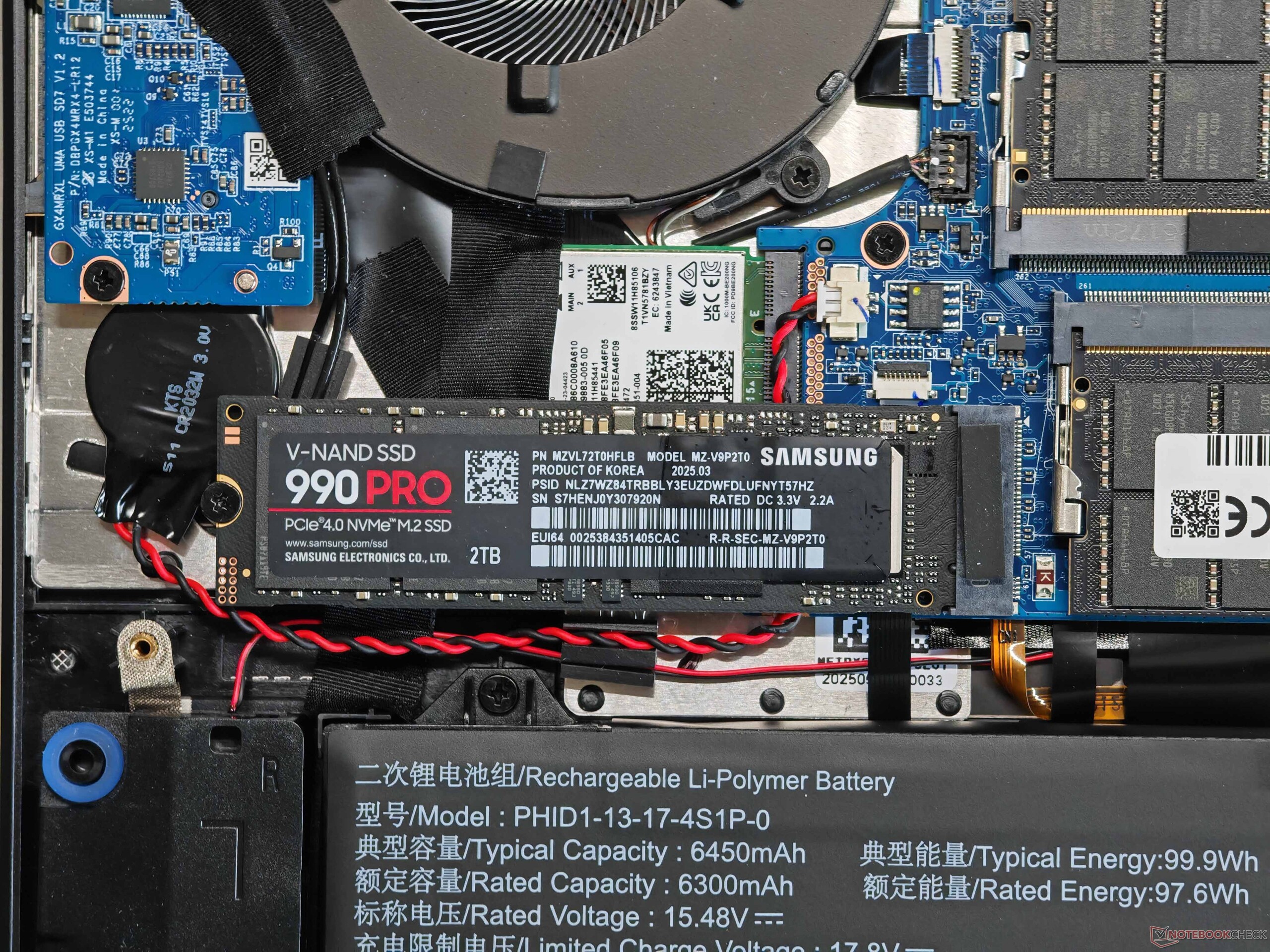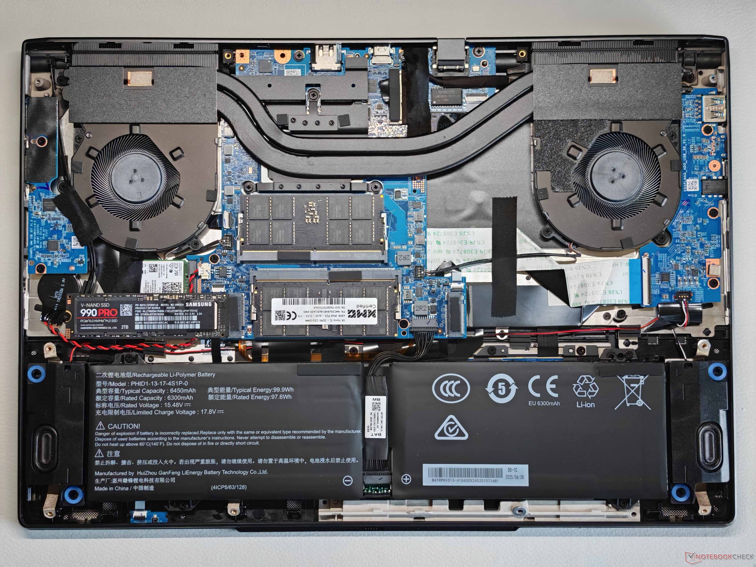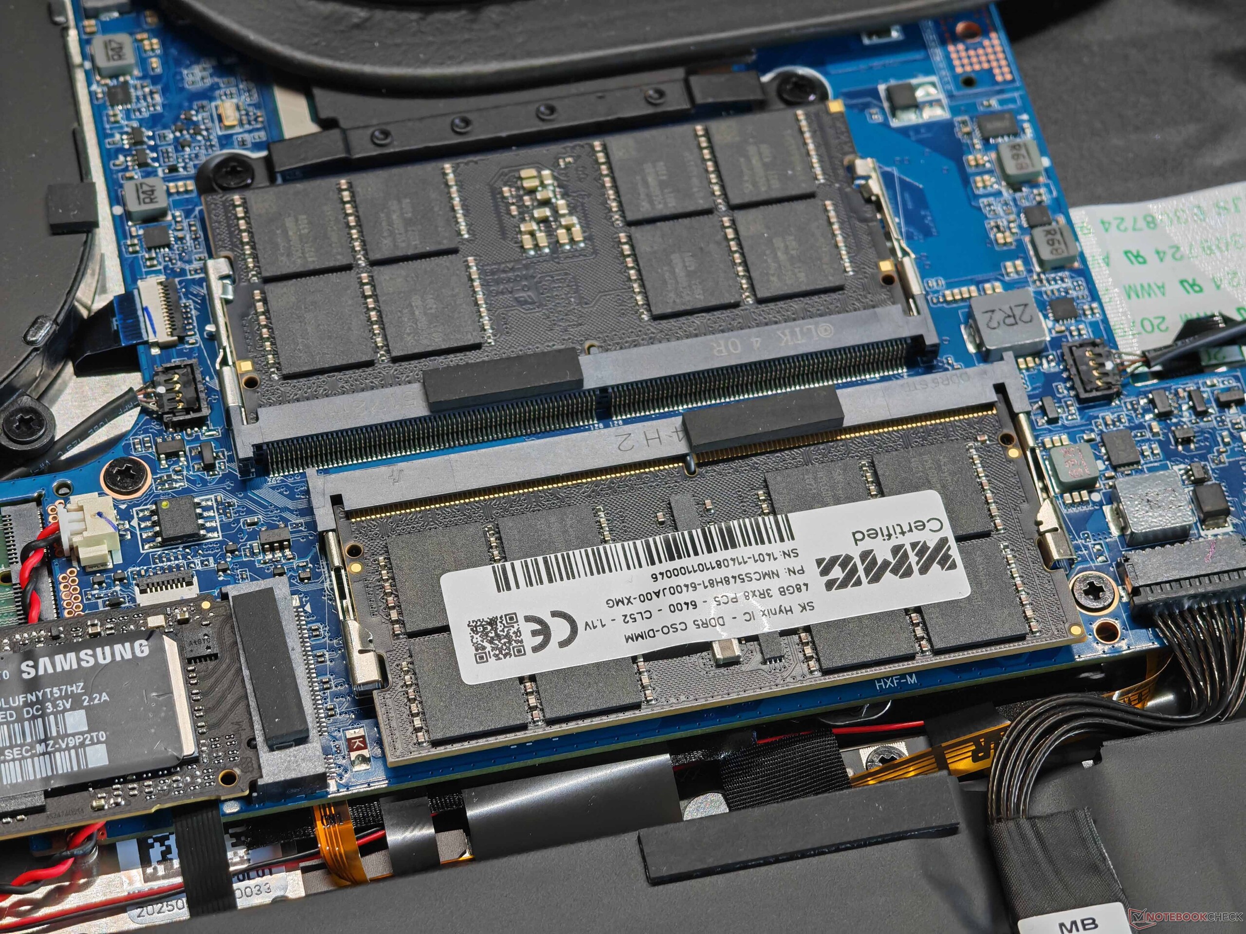 维护选项非常好,支持两个 SO-DIMM 插槽、两个固态硬盘和一个可更换的 WLAN 模块;还提供一个 Wi-Fi 7 模块。在测试过程中,我们没有遇到传输速率方面的问题。Evo 15 提供多种端口,包括 Thunderbolt 4、HDMI 和全尺寸读卡器。1080p 网络摄像头(包括隐私快门和红外模块)足以满足其预期用途。