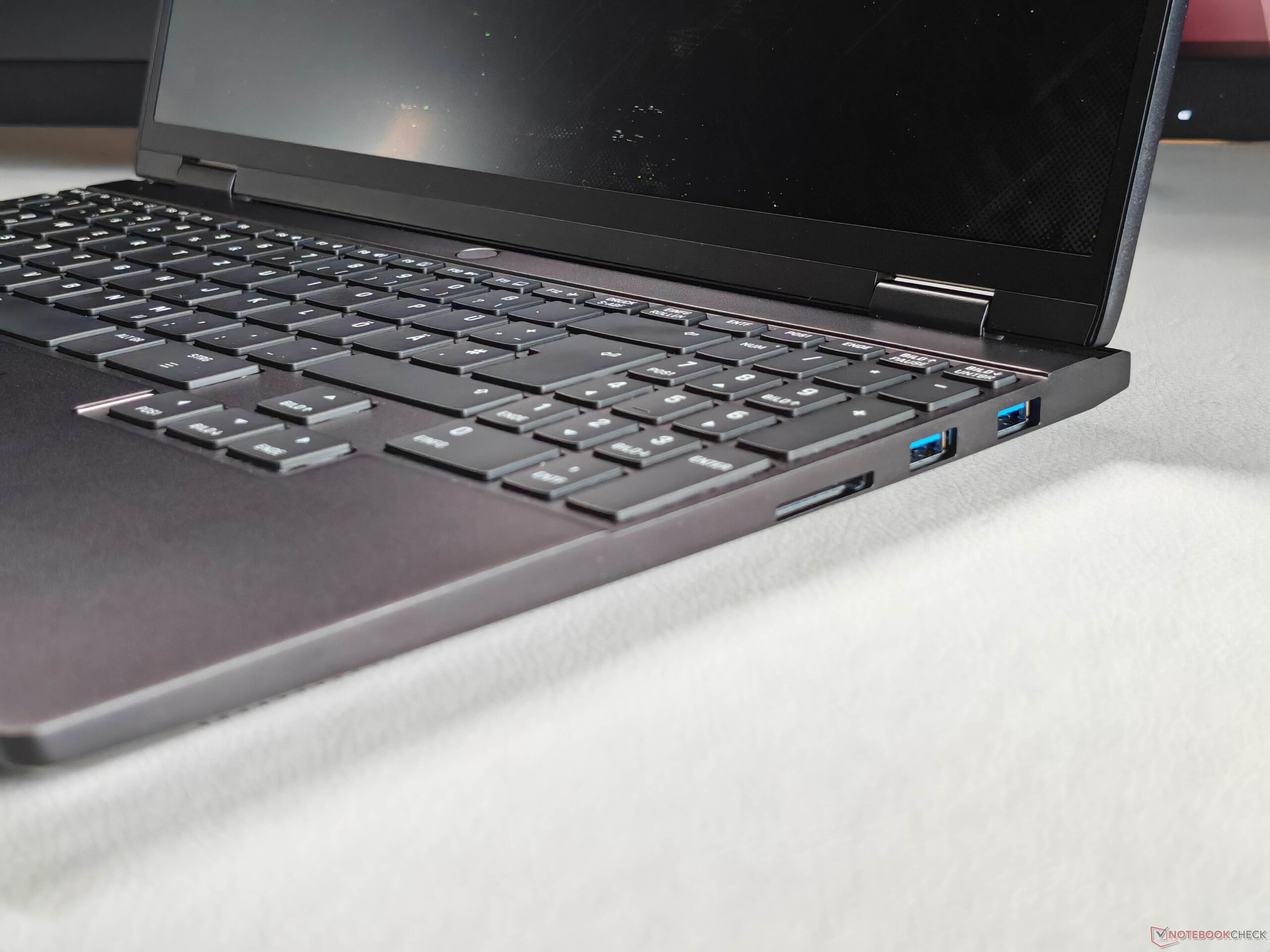 雾面 IPS 面板非常适合生产任务和游戏(快速响应时间和 240 Hz),但其主要缺点仍然是黑阶较高,导致对比度相对较低。此外,电池续航能力也比以前弱了一些,而竞争对手的机型只需提供更强的续航能力。