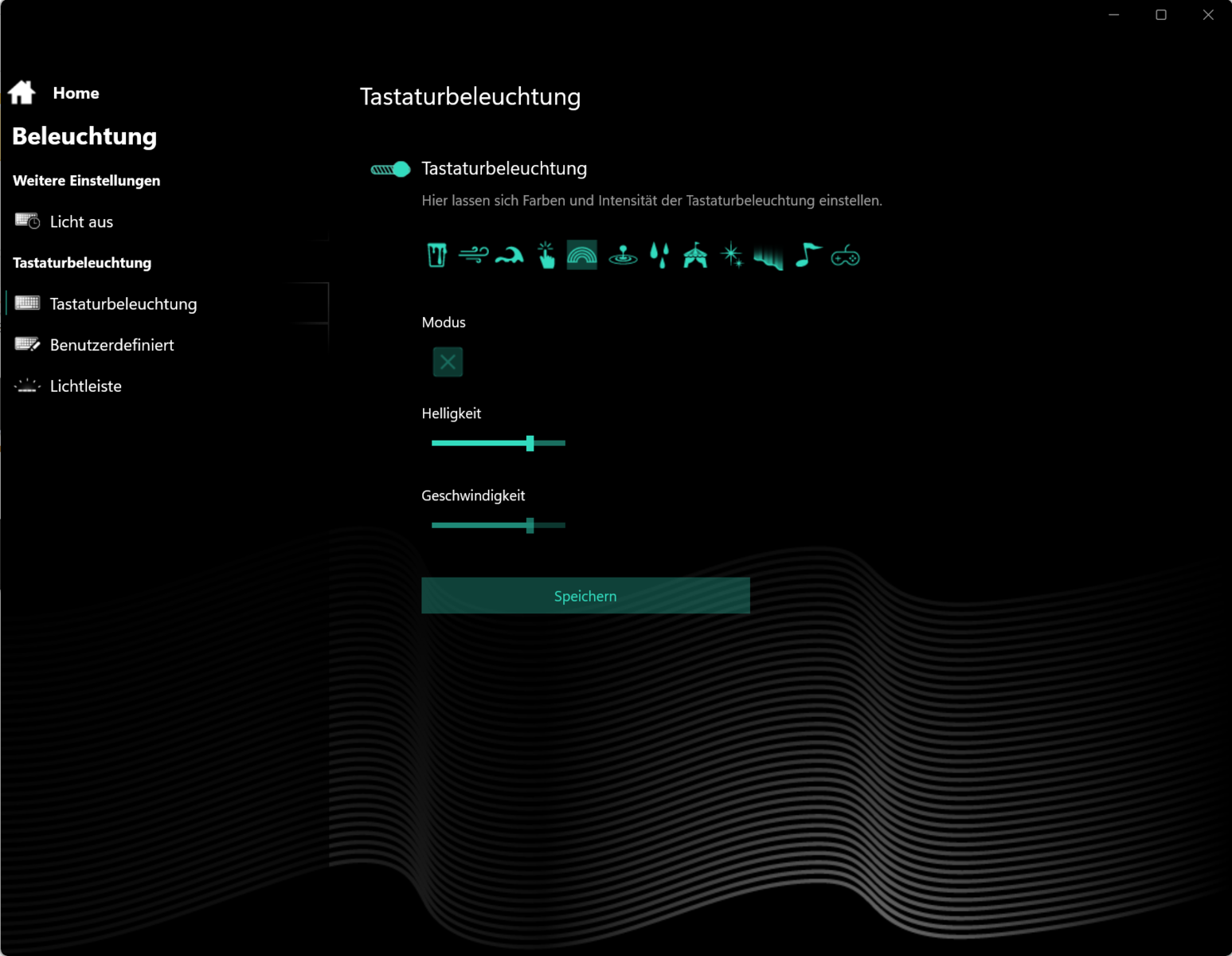 引人注目的设计元素不见踪影,这意味着这款哑光黑色电脑显得相当严肃。除了背光按键(RGB)外,用户还可以自定义 LED 灯带,从而实现多彩的灯光效果。