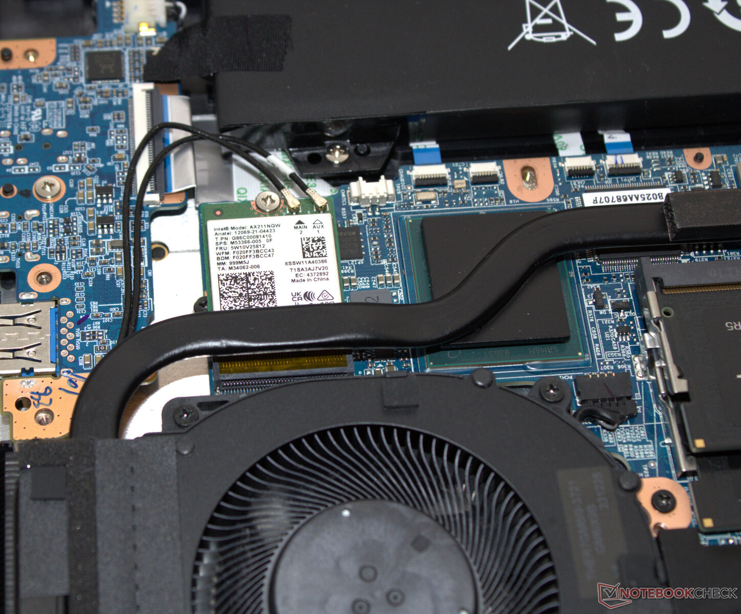 在最佳条件下(附近没有 Wi-Fi 设备,笔记本电脑与服务器电脑之间的距离较短),可以达到很好甚至极佳的数据传输速度 - WiFi 6E 芯片(英特尔 AX211)使之成为可能。有线连接由 Realtek 千兆以太网控制器(RTL8125,2.5 GBit/s)执行。