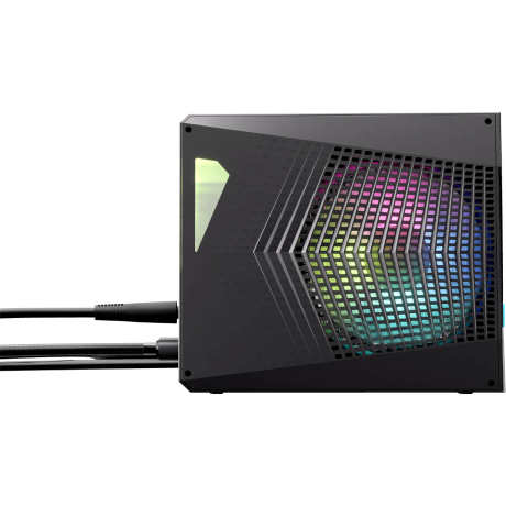 在机箱方面,XMG 成功地将机箱尺寸从 203 x 75 x 186 毫米缩小到 195 x 72 x 166 毫米。机箱后部的窗口比以前更大,并增加了 RGB 灯光,使水位更容易读取。风扇也有一个 RGB 区域,所有 RGB 灯、风扇和水泵都可以通过控制中心软件进行蓝牙控制。XMG 将所有接口都移到了后部,因此管道和现在通过笔记本电脑电源装置实现功能的可拆卸电源线彼此靠近。借鉴 NEO E23 的设计,连接器现在在笔记本电脑和电子管两侧都具有磁性安装和自密封功能。