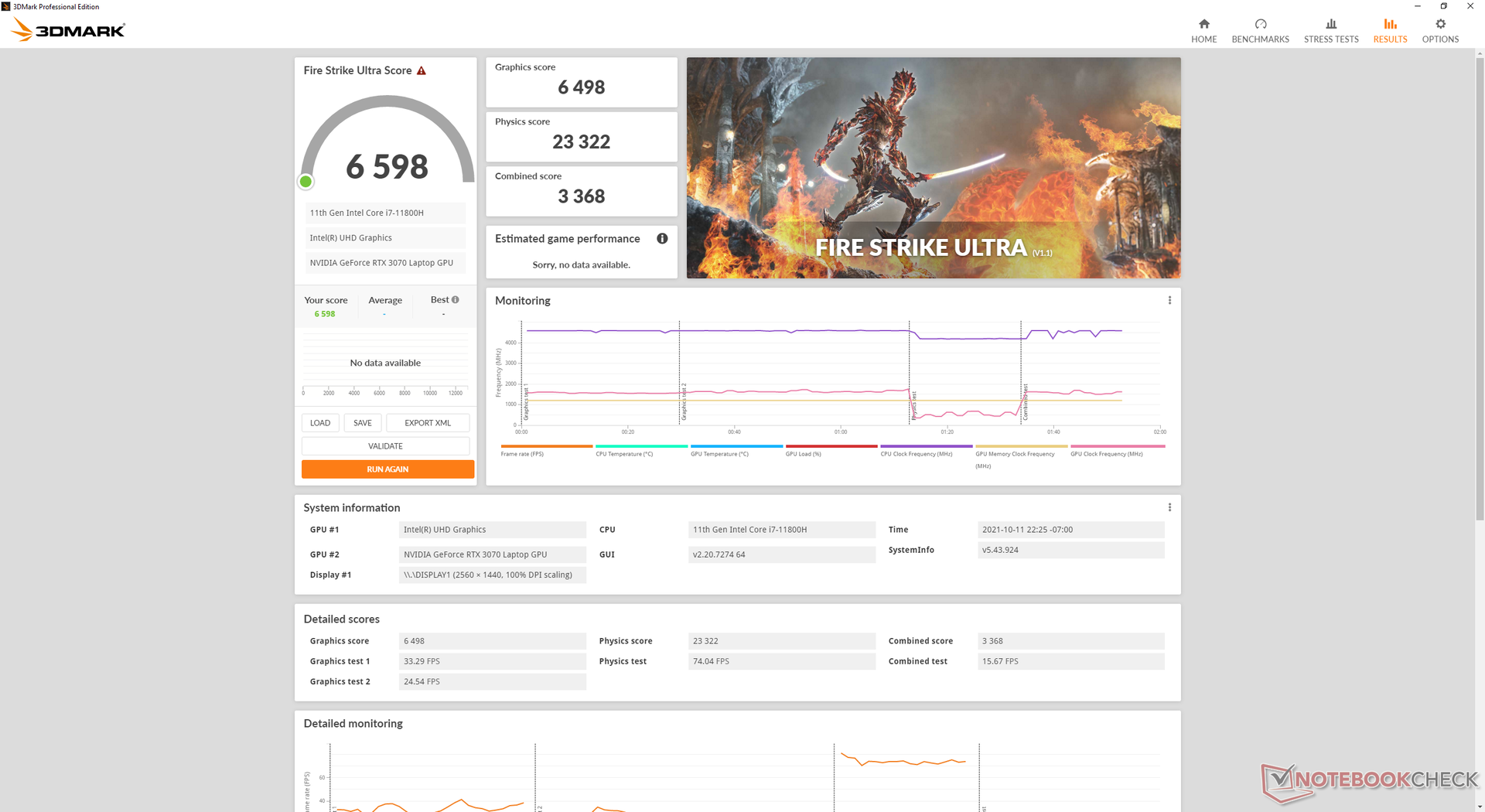 用电池供电运行将限制性能。在电池上运行Fire Strike ,物理和图形分数将分别为19060和18191分,而在主电源上运行时,物理和图形分数为22616和26907分。