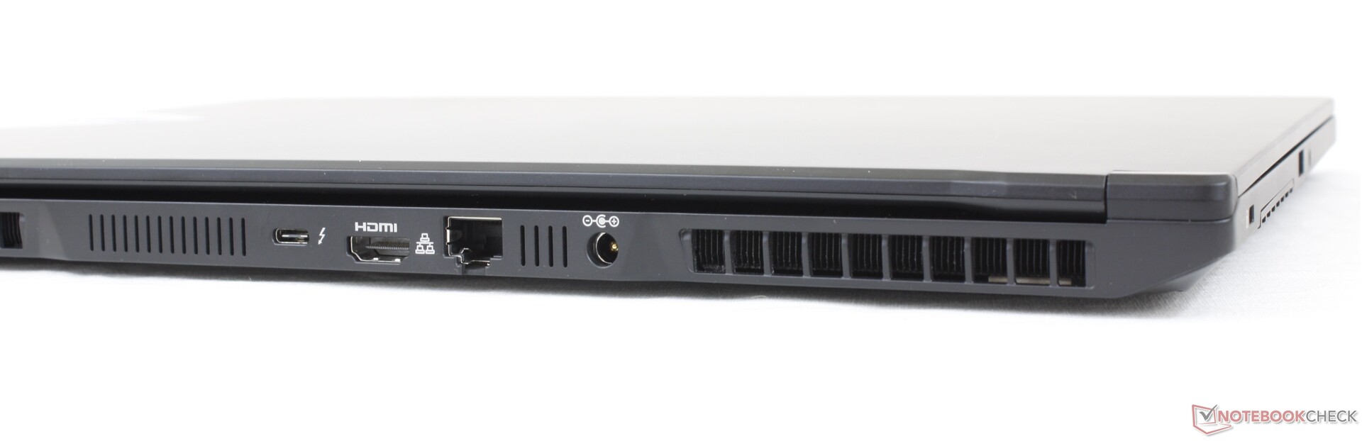 端口选项和定位与Schenker XMG Neo 15相似,但有一些小的区别。例如,专用的3.5毫米麦克风插孔现在没有了,而后面的RJ-45端口没有保护盖。