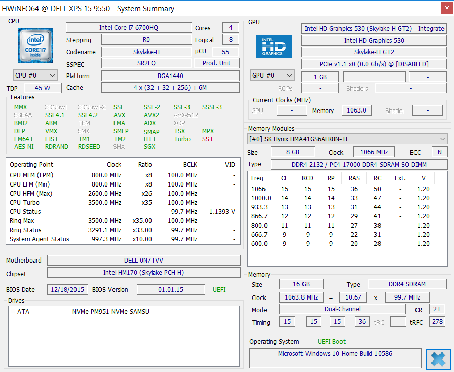 | Dell XPS 15 9550 i7 FHD GeForce GTX 960M, 6700HQ, Samsung PM951 NVMe 512 GB | Dell XPS 15-9550 i7 GeForce GTX 960M, 6700HQ, Samsung PM951 NVMe 512 GB | Dell XPS 15 2016 9550 GeForce GTX 960M, 6300HQ, WDC WD10SPCX-75KHST0 + LiteON CS1-SP32-11 M.2 2242 32GB | Dell XPS 15 (9530-0538) GeForce GT 750M, 4712HQ, Lite-On LMT-512L9M | Dell XPS 15 (Late 2013) GeForce GT 750M, 4702HQ, Samsung SSD SM841 512GB | Dell XPS 13 2016 i7 256GB QHD HD Graphics 520, 6500U, Samsung PM951 NVMe MZ-VLV256D | |