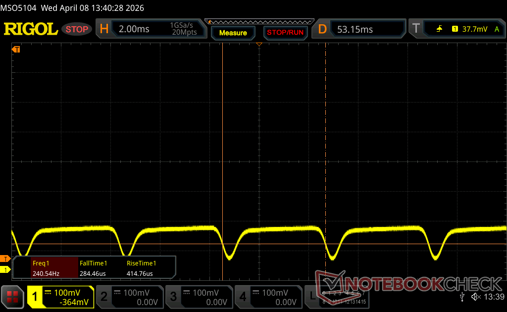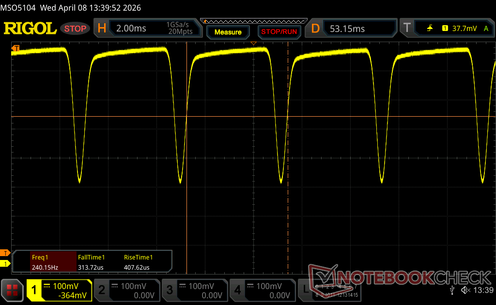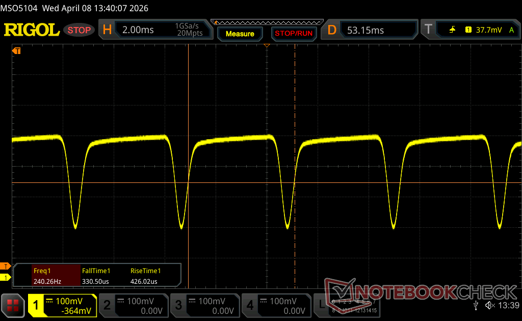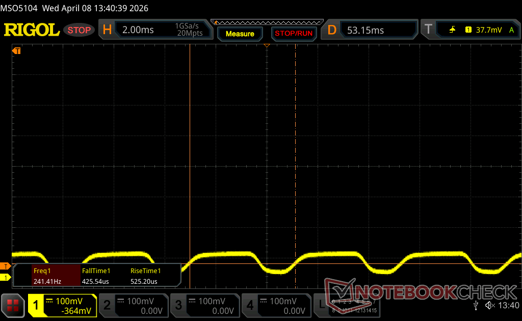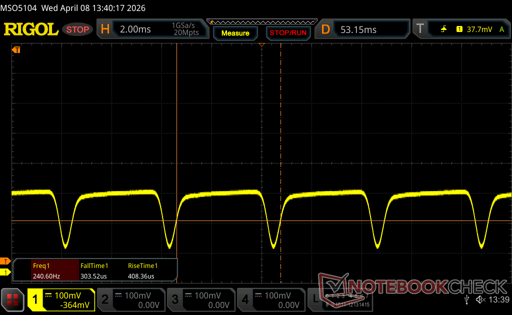 | Screen flickering / PWM detected | 240.2 Hz Amplitude: 31 % | ≤ 100 % brightness setting | |