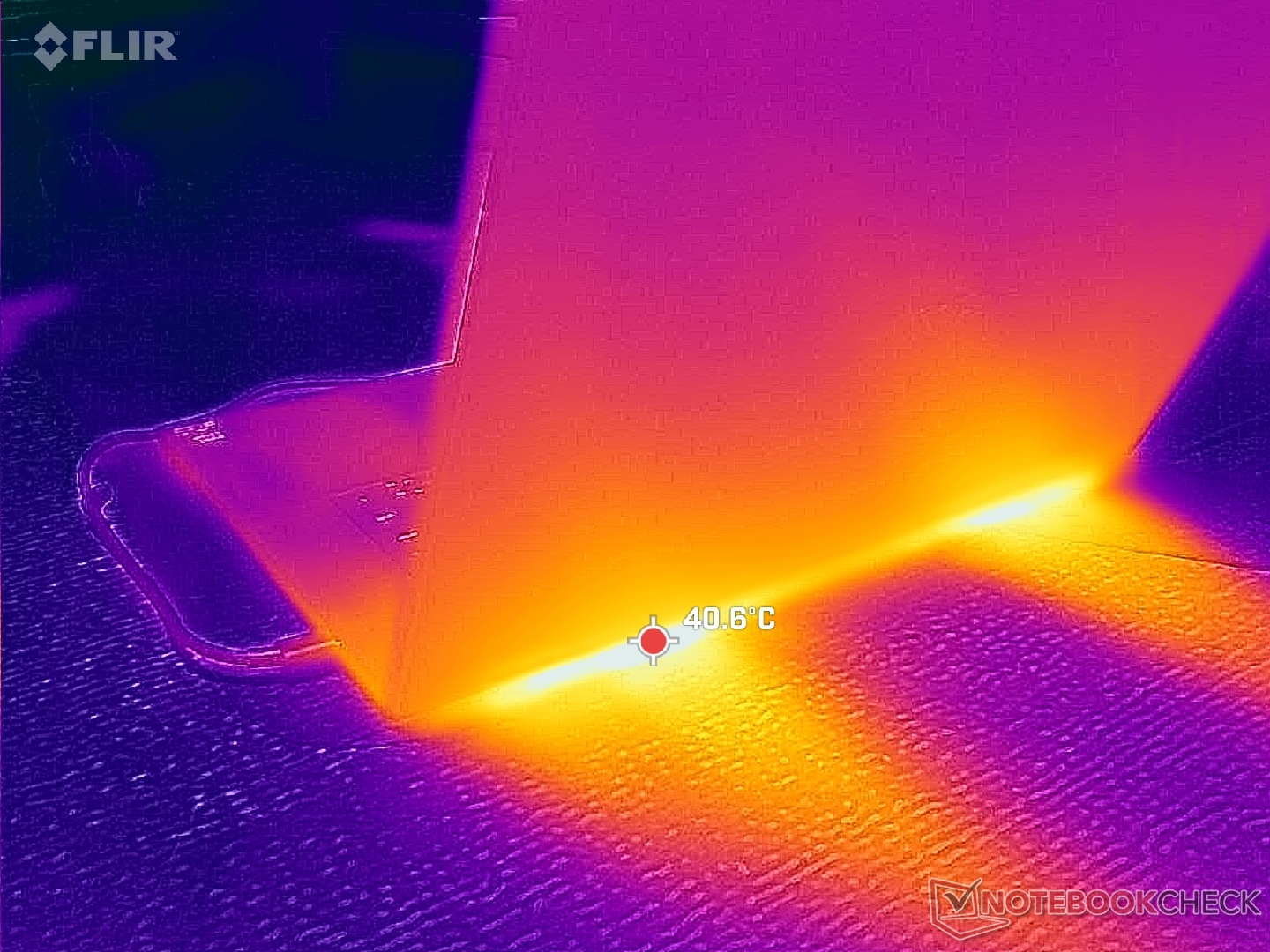 (+) The palmrests and touchpad are cooler than skin temperature with a maximum of 25.6 °C / 78.1 F and are therefore cool to the touch.