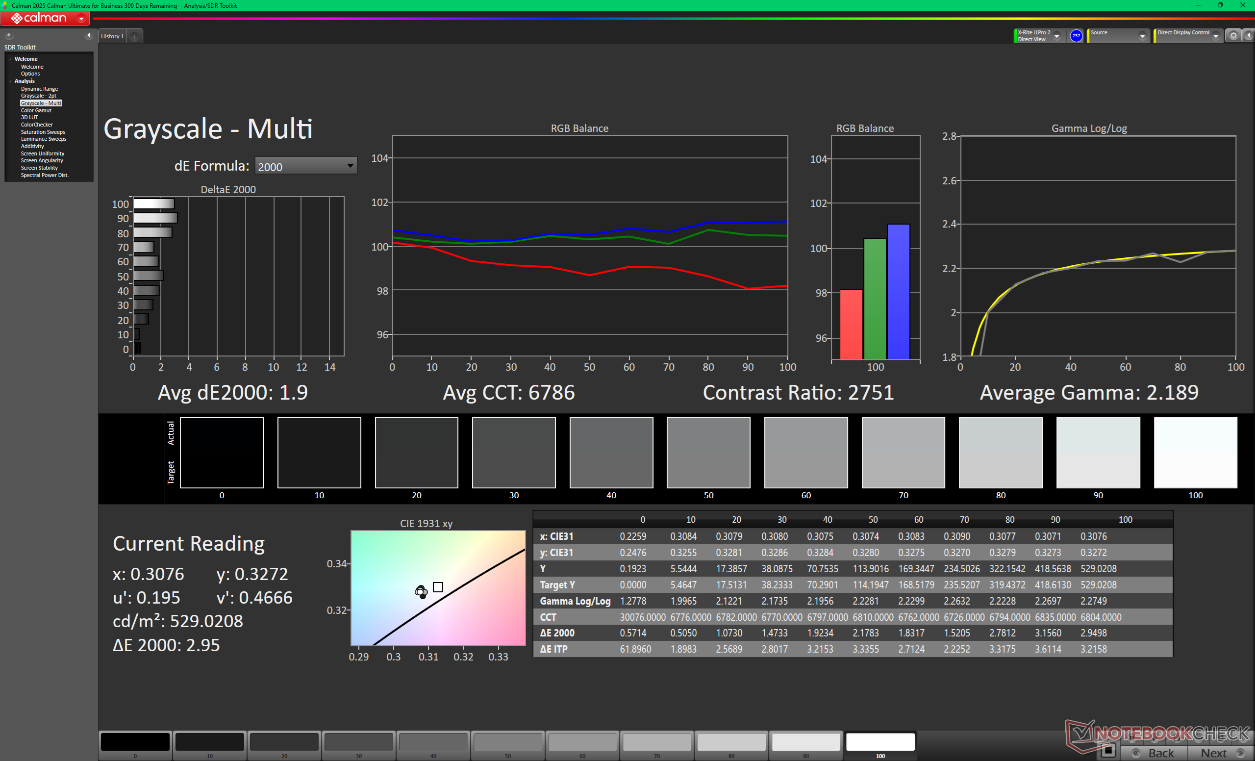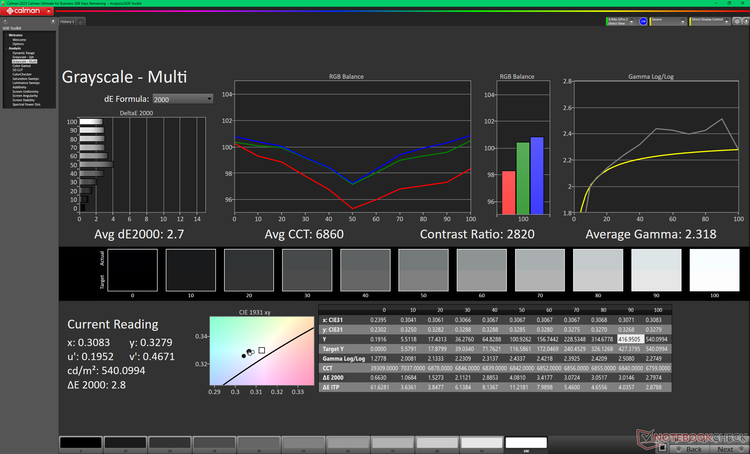 ΔE Greyscale Calman: 2.7 | ∀{0.09-98 Ø5}