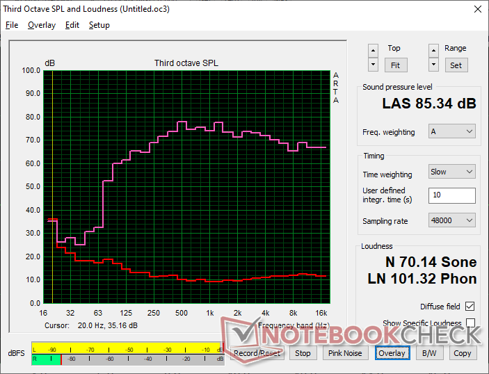 (+) | speakers can play relatively loud (85.3 dB)