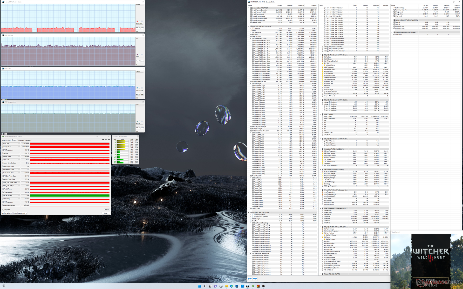 运行时的GPU时钟速率、温度和板卡功耗 Witcher 3将分别稳定在1312MHz、66C和65W,而XPS 17 9710的时钟频率为1530MHz、67C和69W。整体上同比图形性能较慢反映了我们上面记录的3DMark结果较差。