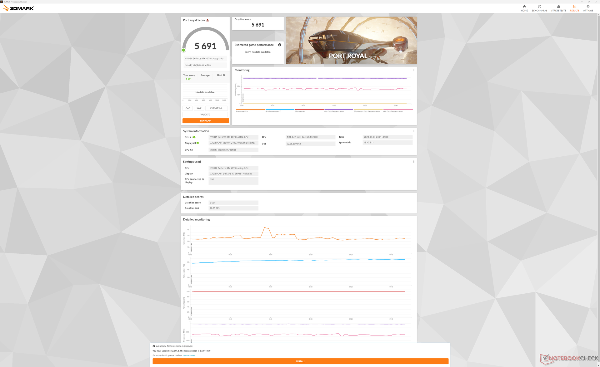 | 90 % v7 (old) | 05 / 2023 | Dell XPS 17 9730 RTX 4070 i7-13700H, GeForce RTX 4070 Laptop GPU | 2.5 kg | 19.5 mm | 17.00" | 3840x2400 | |