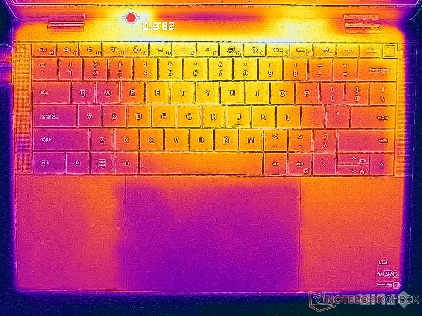 (+) The palmrests and touchpad are cooler than skin temperature with a maximum of 29 °C / 84.2 F and are therefore cool to the touch.