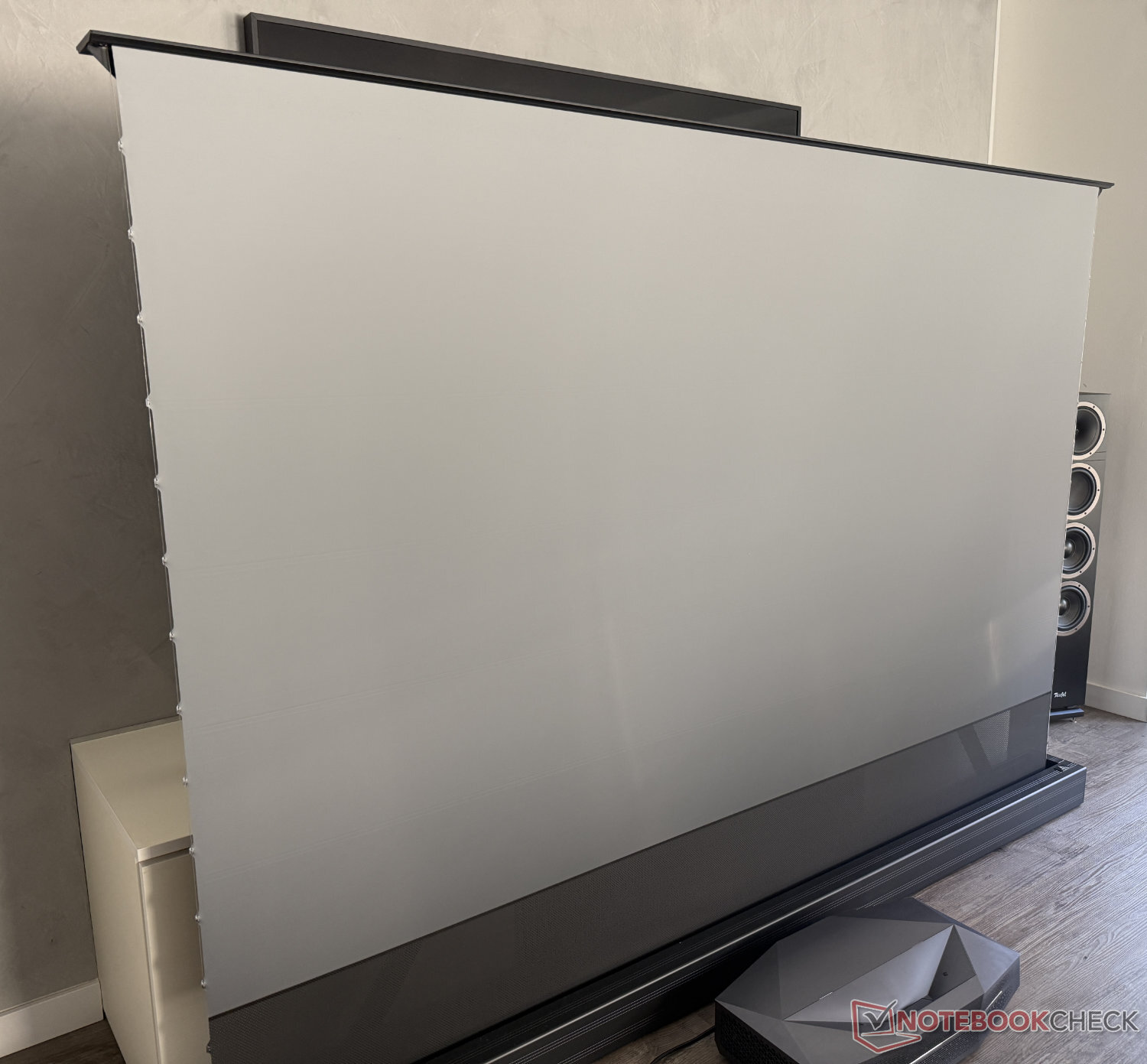 我们使用制造商提供的 100 英寸 Cinematic+ ALR 落地式银幕对 Aetherion Max 进行了测试。这为投影仪提供了出色的支持,但也并非完全没有瑕疵。