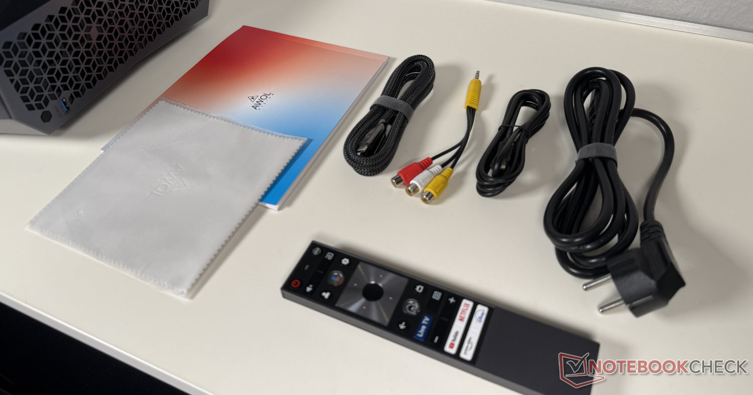 根据数据表,AWOL Vision 安装了四个扬声器:两个全频驱动器,每个功率 25 瓦;两个高音扬声器,每个功率 20 瓦。据制造商称,Aetherion Max 还支持 Dolby Atmos 和 DTS:X。该投影仪的内置扬声器音质扎实,最大音量较高,适合观看新闻或体育节目。不过,给我们的印象是声音有点闷,跟不上画质。在这个价位上,我们希望能有更大的音效。