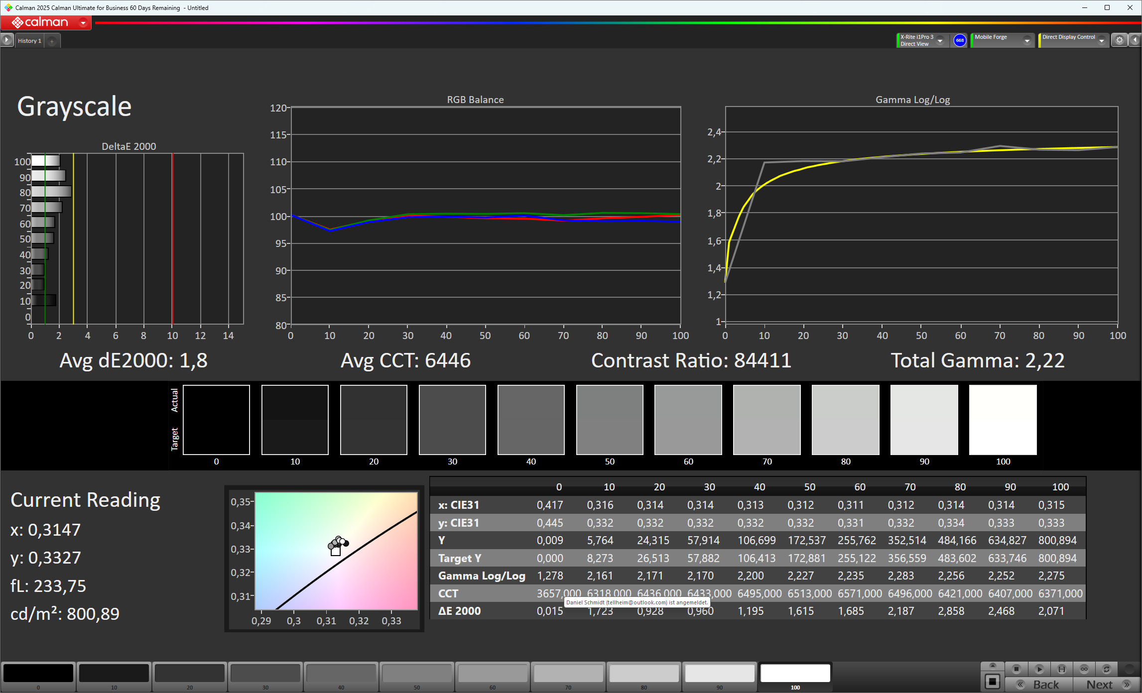 ΔE Greyscale Calman: 1.8 | ∀{0.09-98 Ø5}