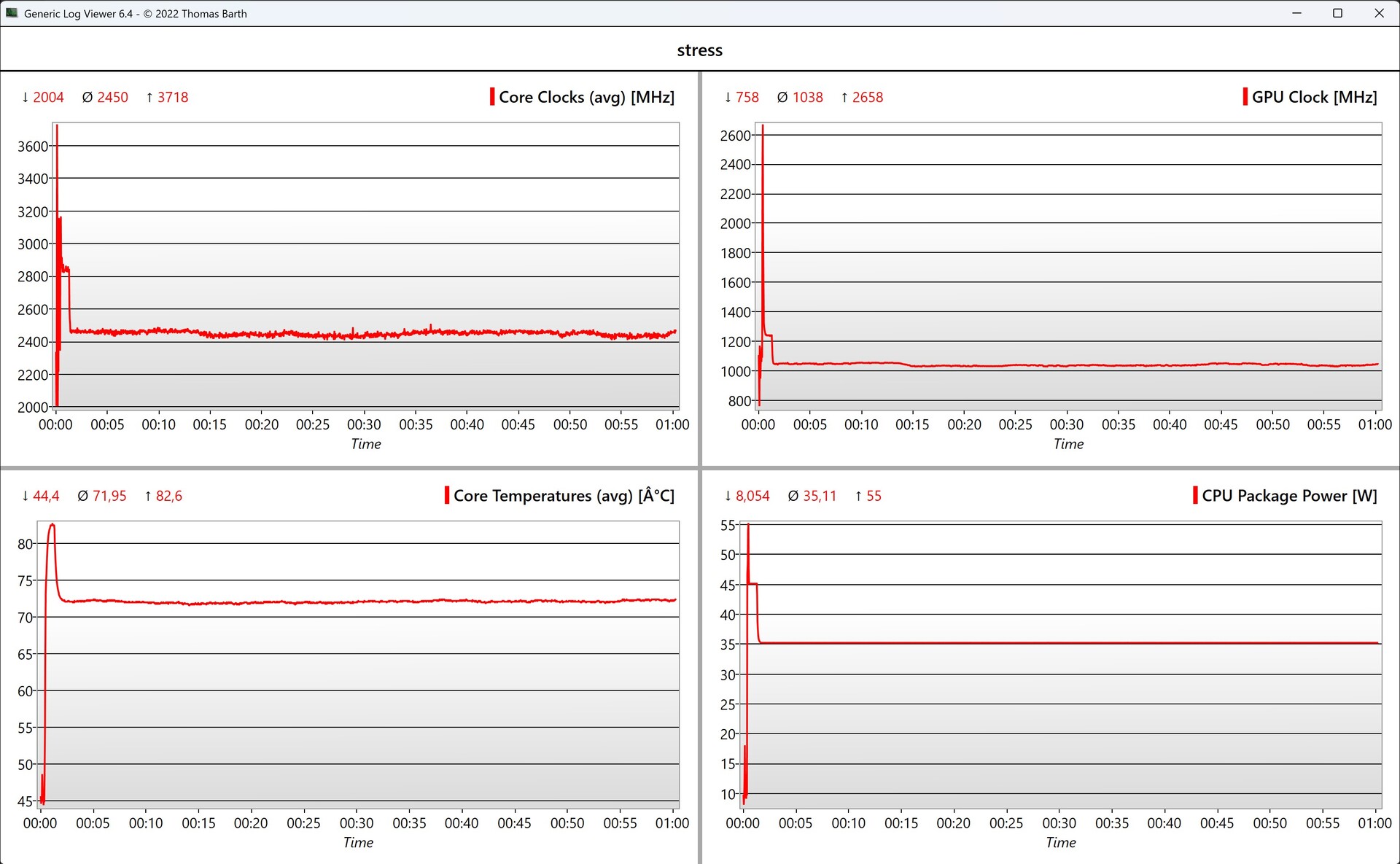 与旧版 Ally X 相比,空载功耗略有降低。我们测量到负载下的功耗在短时间内高达 66 瓦,但很快就降到了 55 瓦左右。因此,65 瓦的电源适配器已经足够大了。