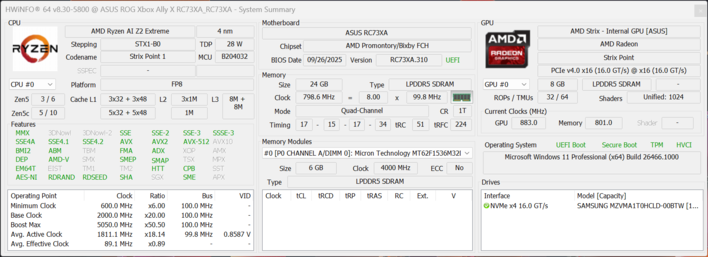Asus ROG Xbox Ally X Ryzen Z2 Extreme, Radeon 890M, Samsung MZVMA1T0HCLD, IPS, 1920x1080, 7" | GPD Pocket 4 Ryzen AI 9 HX 370, Radeon 890M, , IPS, 2560x1600, 8.8" | Zotac ZGC-G1A1W-01 R7 8840U, Radeon 780M, Phison PS5021-E21 512GB, OLED, 1920x1080, 7" | MSI Claw 8 AI+ Core Ultra 7 258V, Arc 140V, Kioxia BG6 KBG60ZNS1T02, IPS, 1920x1200, 8" | Asus ROG Ally X Z1 Extreme, Radeon 780M, WD PC SN560 SDDPNQE-1T00, IPS, 1920x1080, 7" | Average AMD Radeon 890M | Average of class Handheld / UMPC | |