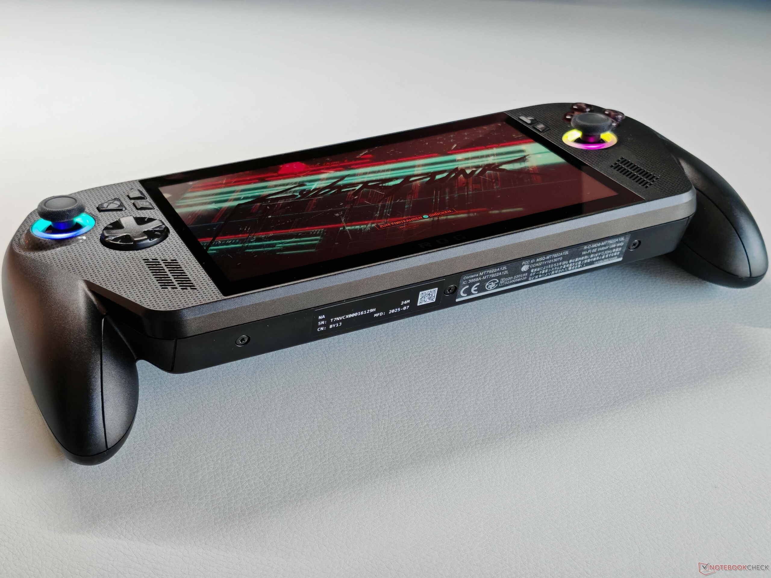 底盘仍然由塑料制成,但质量完全没问题。我们的测试机在稳定性和制造质量方面没有任何问题。ROG Xbox Ally X 采用黑色机箱,正面有小的 ROG 徽标,但表面很光滑。背面的手柄略显粗糙,这改善了握持感。标准版 ROG Xbox Ally 采用白色底盘。