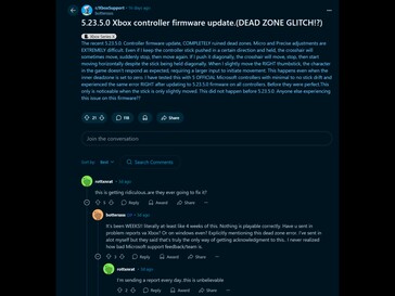 虽然微软的大多数回复都没有提供帮助,但一位代理商提供了有价值的见解。一位代表证实,意外输入是从 Xbox 控制器固件更新 5.23.5.0 之后开始的。作为二月初更新的一部分,虚拟死区本应在摇杆返回中心位置之前激活。不幸的是,它无法正常工作,导致 Xbox 控制器出现不稳定的行为。