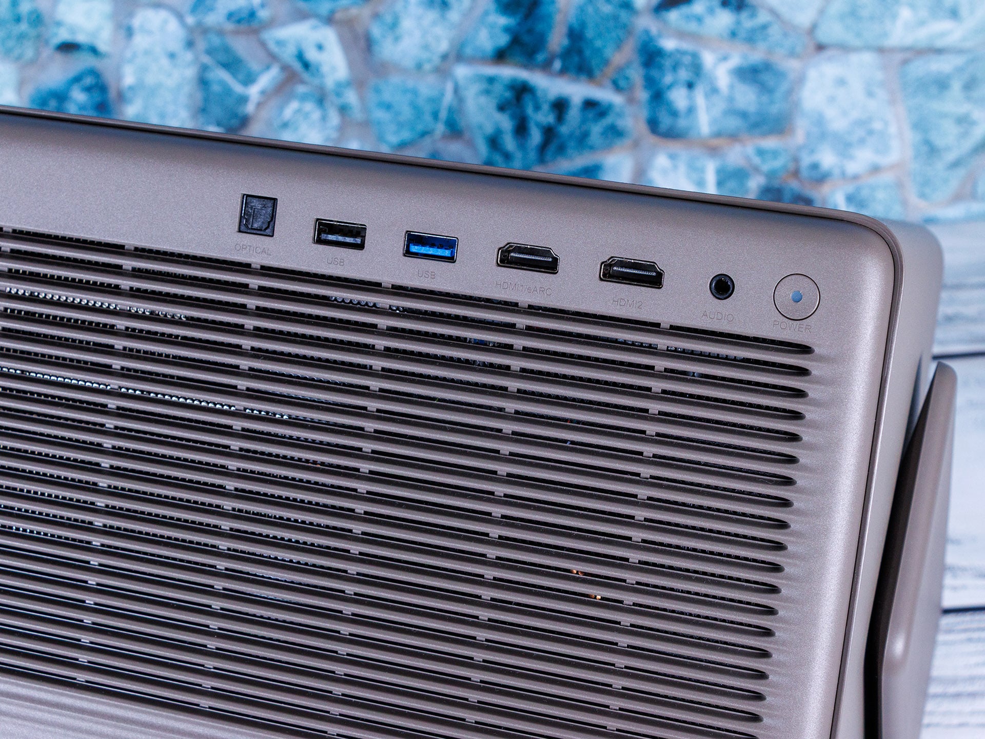 背面的连接和电源按钮很容易触及。不过,目前的功能还不是特别丰富。在两个 HDMI 端口中,第一个兼容 eARC,但仅限于 60 Hz 的 4k。此外,还没有以太网连接,Wi-Fi 也仅限于 2.4 和 5.0 GHz 频段。
