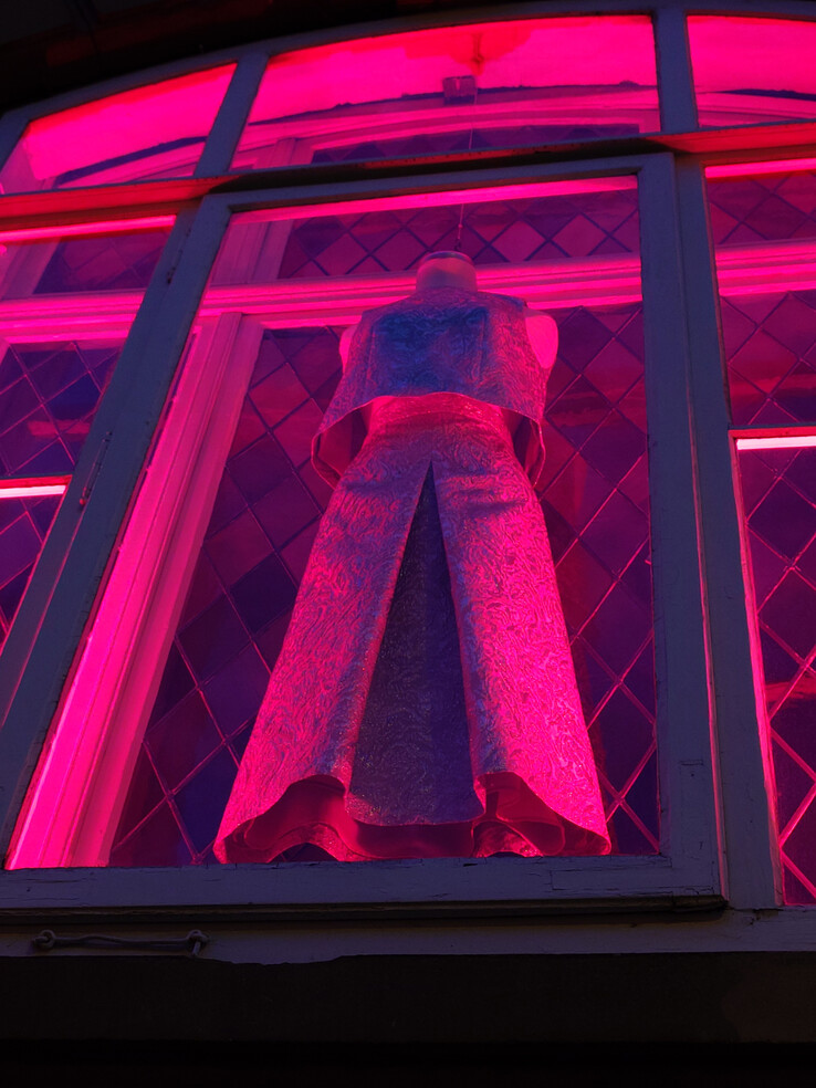 我们穿过萨克森豪森区的小巷前往酒店,在夜晚的商店橱窗里发现了一件特制的名牌服装。索尼在灯光氛围的捕捉方面再次做得更好,但遗憾的是,它在清晰度和细节丰富度方面再次败下阵来。