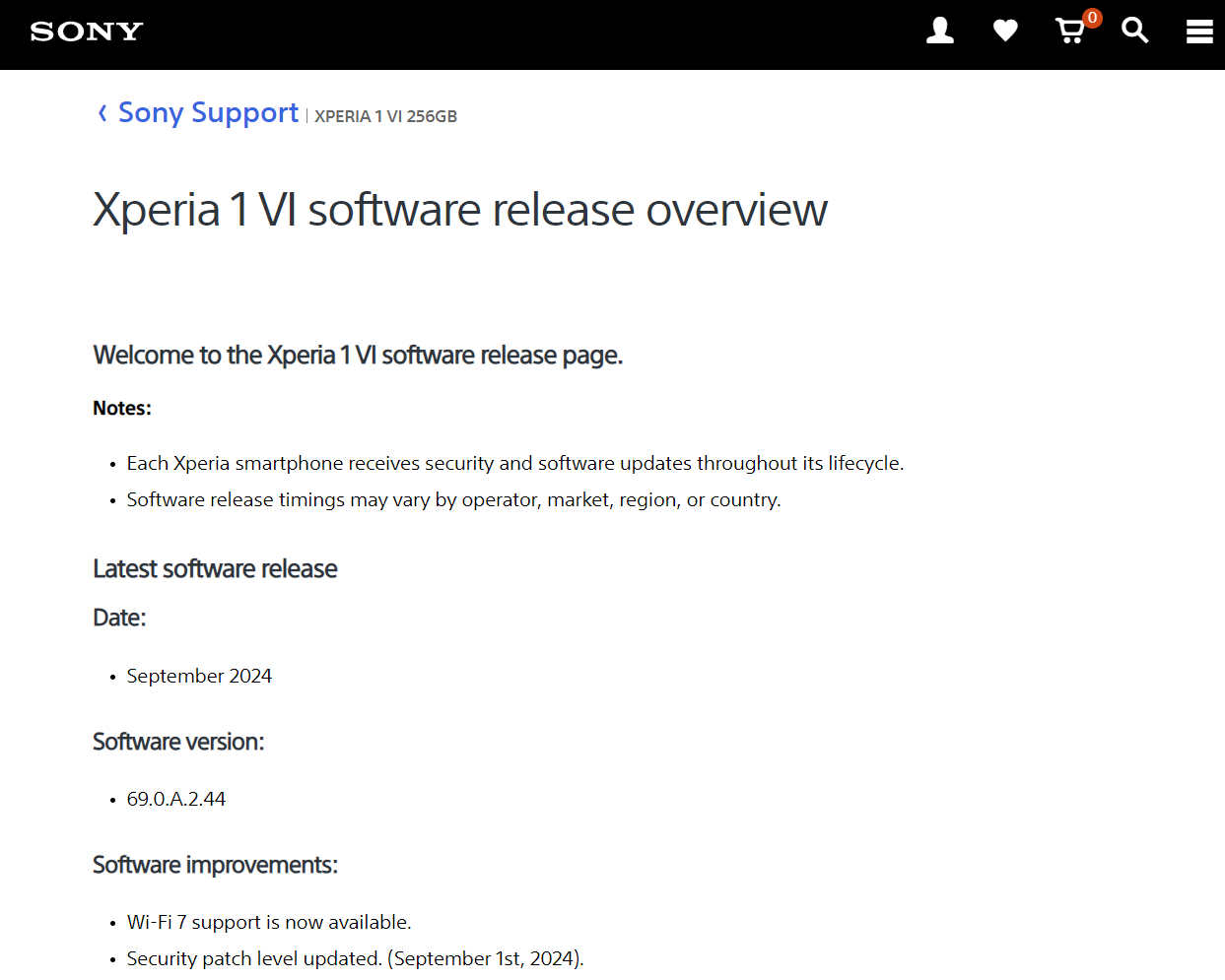 请注意 Xperia 1 VI需要使用兼容 Wi-Fi 7 的路由器才能使用这些网络增强功能。此外,索尼正在推出支持 Wi-Fi 7 的软件版本 69.0.A.2.44,其中还包含 2024 年 9 月的安全补丁。据XperiCheck 报道。大多数 Xperia 1 VI版本应该已经收到了 69.0.a.2.44,例如在欧洲、英国、日本和东南亚市场销售的版本。