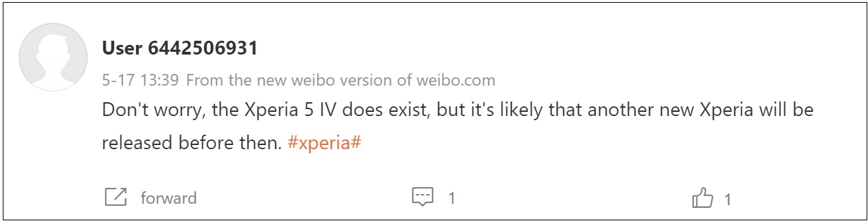 至于Xperia 5 IV的发布日期暗示,除了FCC名单之外,还有这个所谓的价格标签的出现需要考虑,以及Sony US目前有 Xperia 5 III从999.99美元折扣到799.99美元。同样的设备现在的价格是699英镑在英国。还值得考虑的是老款机型的发布时间,即2021年10月。然而,尽管有这些迹象表明可能即将推出,但提供这一价格泄漏的同一消息来源还声称,另一款新的Xperia将首先到来,这可能是2022年的索尼Xperia PRO手机。