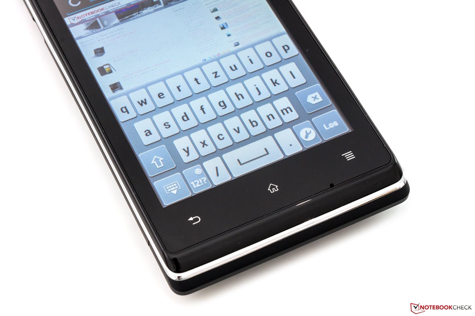 Input commands are made through a capacitive 3.5-inch touchscreen which converts touch with very high precision. The device also supports multi-touch gestures, but to a limited extent, since the panel can only cope with two fingers at the same time. However, in everyday life this fact is not noticed. A virtual keyboard is used for inputting text. The visual style of the keyboard has changed slightly. Overall, the layout seems very comfortable. Only the keyboard uses a lot of space in landscape format, as we have already discussed in the test of the Sony Xperia J.