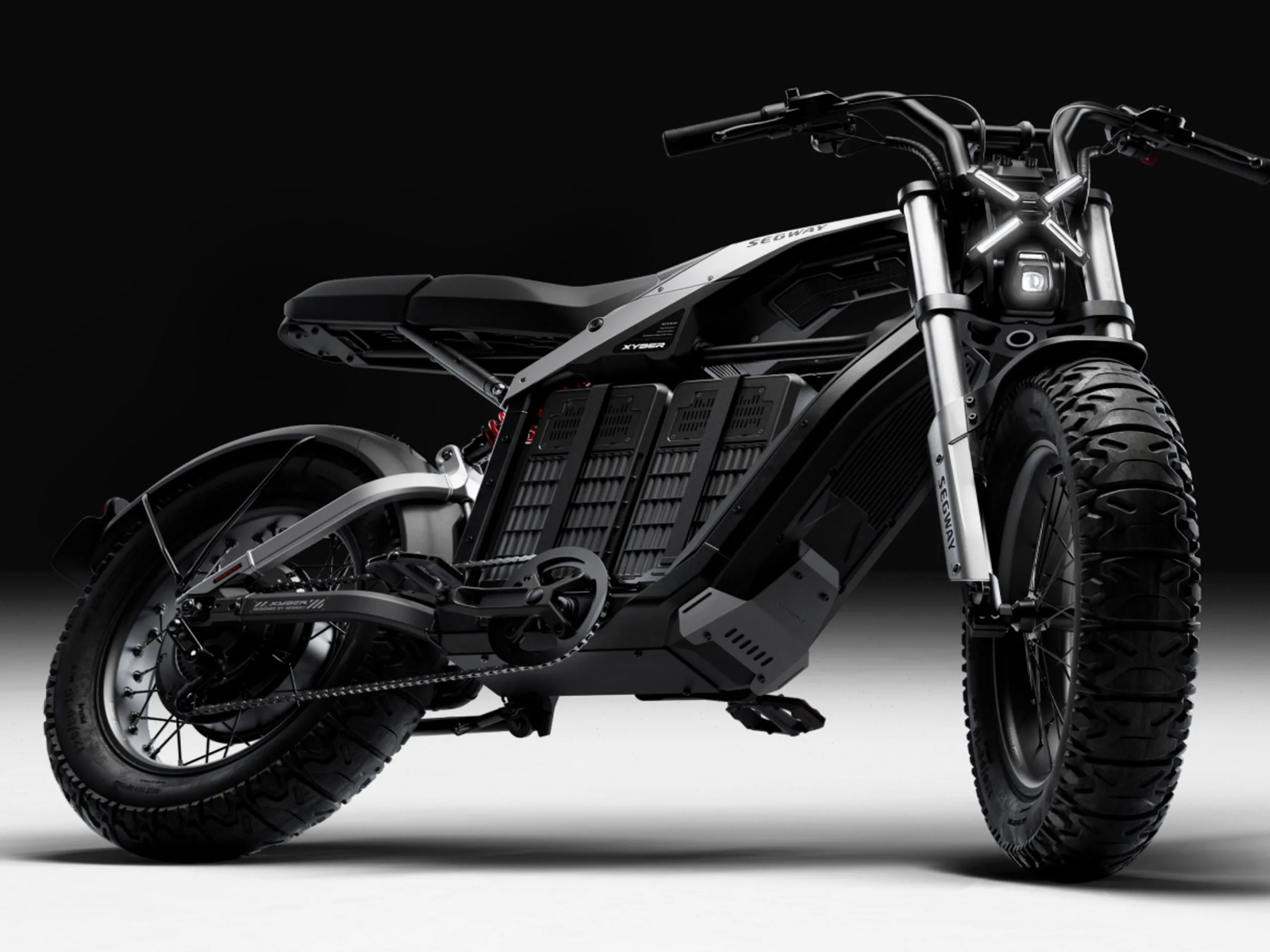Xyber 采用全悬挂系统,前悬挂为 110 毫米,后悬挂为 100 毫米,配备液压盘式制动器和一个 1300 流明的前灯。配备的 5 英寸宽轮胎与悬挂系统相结合,使其适合越野使用。规定净重为 63 千克(138 磅),最大限重为 185 千克(408 磅)。集成了 GPS 和Apple's Find My。车载 TFT 屏幕对角线为 2.4 英寸,最大亮度为 1,400 cd/m²。配套的 Segway Mobility 应用程序允许用户定位电动自行车、检查电池电量和剩余续航里程、查看骑行数据,并与Apple Health 和 Google Health 连接。