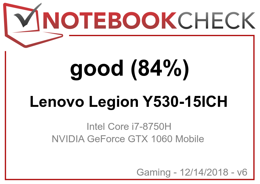 | Lenovo Legion Y530-15ICH i7-8750H, GeForce GTX 1060 Mobile, Samsung SSD PM981 MZVLB256HAHQ, IPS, 1920x1080, 15.6" | HP Pavilion Gaming 15-cx0003ng i7-8750H, GeForce GTX 1050 Ti Mobile, Intel Optane 16 GB MEMPEK1J016GAH + HGST HTS721010A9E630 1 TB HDD, IPS, 1920x1080, 15.6" | Lenovo Legion Y7000P-1060 i7-8750H, GeForce GTX 1060 Mobile, Samsung SSD PM981 MZVLB256HAHQ, IPS, 1920x1080, 15.6" | Medion Erazer P6705-MD61131 i7-8750H, GeForce GTX 1050 Ti Mobile, Samsung SSD PM981 MZVLB256HAHQ, TN, 1920x1080, 15.6" | MSI P65 8RF-451 - Creator i7-8750H, GeForce GTX 1070 Max-Q, Kingston RBUSNS8154P3512GJ, IPS, 1920x1080, 15.6" | Razer Blade 15 Base Model i7-8750H, GeForce GTX 1060 Max-Q, Samsung SSD PM981 MZVLB256HAHQ, IPS, 1920x1080, 15.6" | Lenovo Legion Y530-15ICH i5-8300H, GeForce GTX 1050 Ti Mobile, Toshiba KBG30ZMT128G, IPS, 1920x1080, 15.6" | Average NVIDIA GeForce GTX 1060 Mobile | Average of class Gaming | |