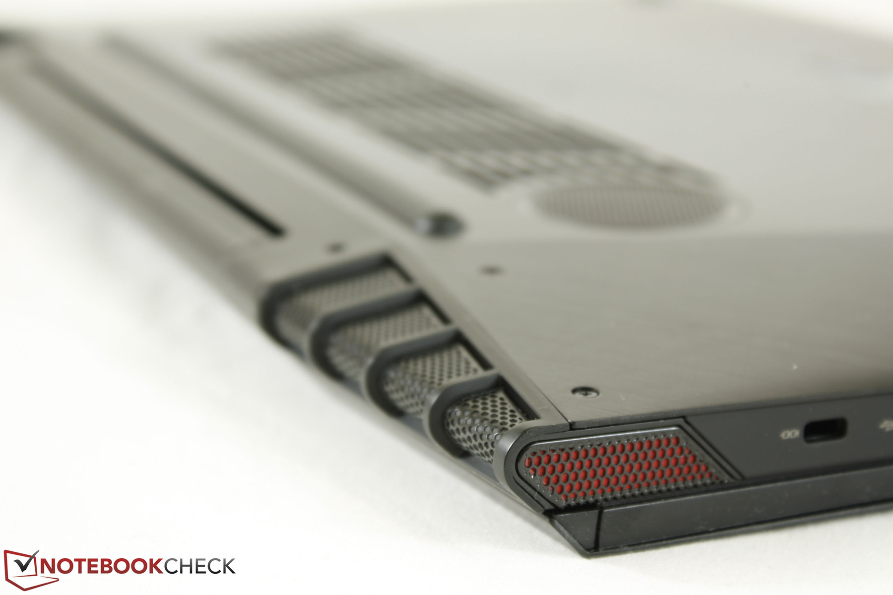 不过它仍然有一些遗传自Y50的弱点用户需要注意。尽管它的机身大部分都十分坚固,但机身后部的边角处和网栏都十分脆弱,很容易损坏,不如其他17.3寸游戏本如华硕 G750或微星 GT72看起来坚固。连接性和扩展性方面仍然很有限,特别是现在对于这个尺寸的笔记本来说,4个USB接口,多种视频输出接口,mSATA拓展接口和多硬盘RAID支持都渐渐成为了标准的配备。