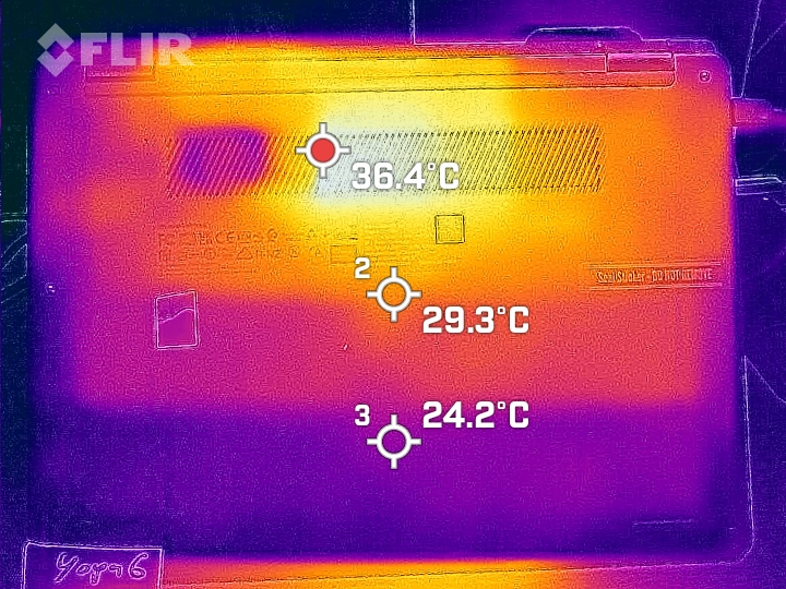 制冷越安静,键盘下的CPU活动就越容易被察觉。即使在没有明显的CPU负载的情况下,也能感觉到温度的轻微上升。Yoga 6不会变得令人不舒服的热,但机箱上50℃的绝对峰值是相当大的。