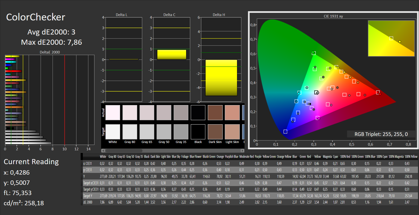 ΔE ColorChecker Calman: 3 | ∀{0.5-29.43 Ø4.78}