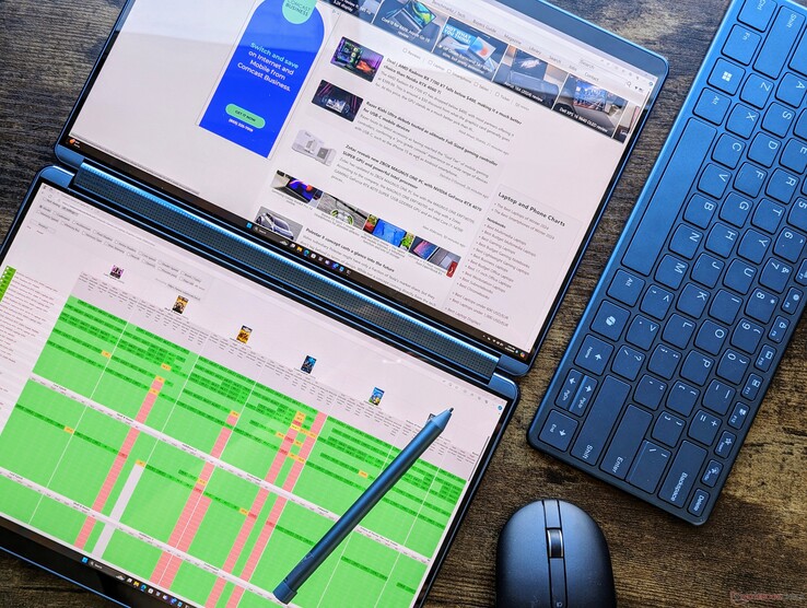 | Lenovo Yoga Book 9 13IMU9 Ultra 7 155U, Graphics 4-Core iGPU (Arrow Lake), 80 Wh | Lenovo Yoga Book 9i 2-in-1 Dual Screen i7-1355U, Iris Xe G7 96EUs, 80 Wh | Lenovo Yoga 9 2-in-1 14IMH9 Ultra 7 155H, Arc 8-Core, 75 Wh | Dell XPS 13 9310 2-in-1 i7-1165G7, Iris Xe G7 96EUs, 51 Wh | HP Spectre x360 14-eu0078ng Ultra 7 155H, Arc 8-Core, 68 Wh | Asus Zenbook Duo OLED UX8406MA Ultra 9 185H, Arc 8-Core, 75 Wh | |