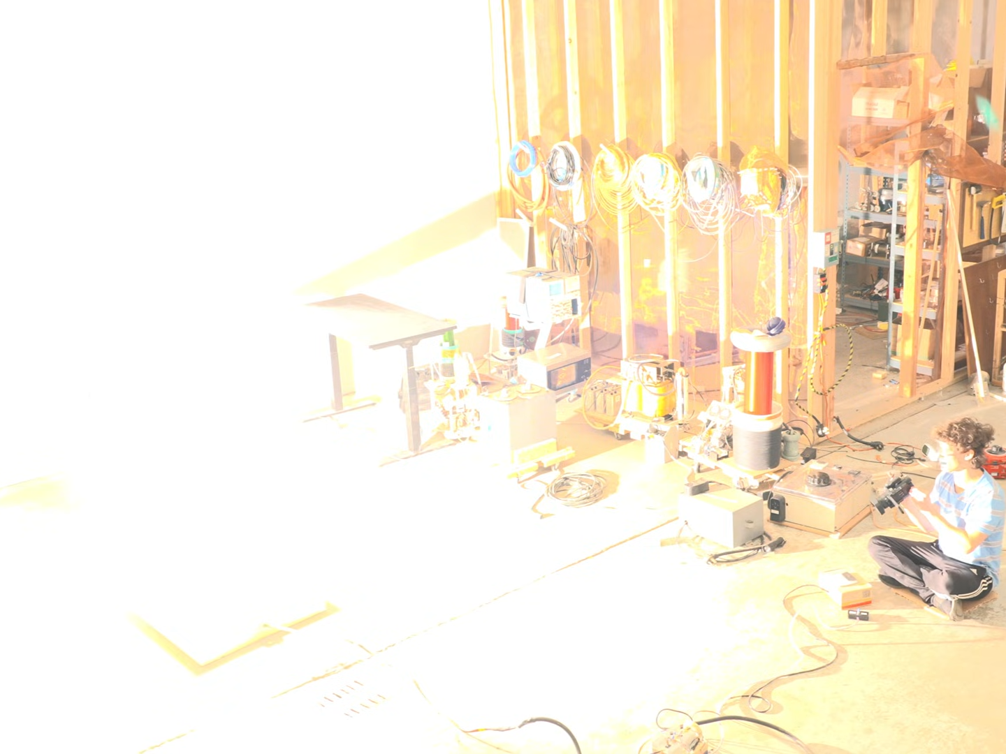 使用铝片作为反射器,将灯泡发出的光引向一个方向,产生的热量非常高,以至于报纸和纸板等物品靠近时会着火。将功率调到 3 万瓦后,即使不使用反光板,他也能将物品靠近后烧毁。