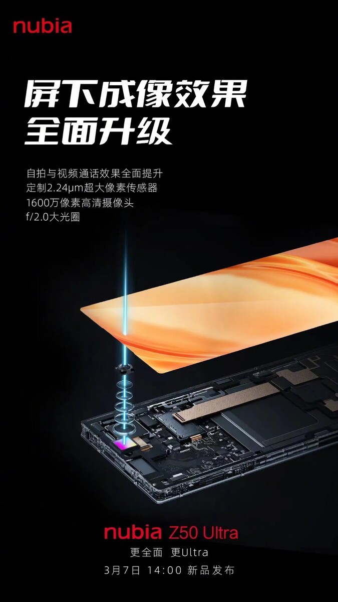 中兴通讯还将重新提供面板下的摄像头,就像去年的Axon 40 Ultra那样。努比亚40Ultra.不出所料,中兴通讯宣传努比亚Z50 Ultra具有比Axon 40 Ultra更优越的解决方案。努比亚40Ultra.从实际情况来看,1600万像素的面板下摄像头应该比Axon 40 Ultra上的更不明显。努比亚40Ultra或Galaxy Z Fold4等机型。努比亚Z50 Ultra的摄像头在其他方面也可能会让人兴奋,它的后置焦距为35毫米和85毫米等效。