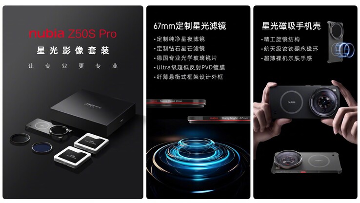 努比亚 Z50S 星光套装在中国的售价为 599 元人民币(约合 82 美元)。购买者可获得带有磁环和 67 毫米滤镜螺纹的保护套,以及两款配套滤镜,包括 "星空 "和 "闪星 6x"。努比亚尚未确认在国际市场推出的任何细节。