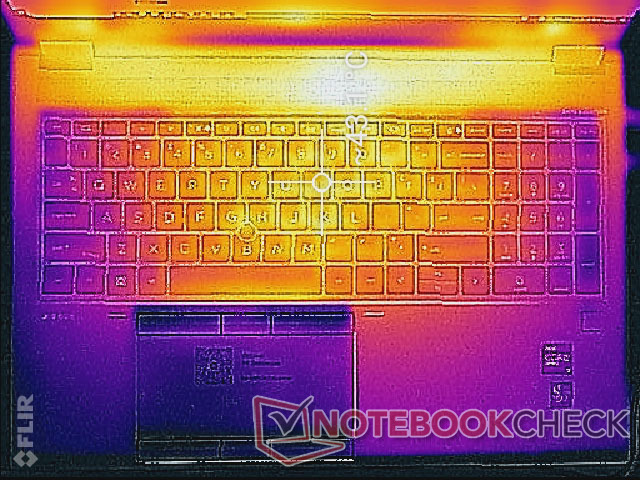 (+) The palmrests and touchpad are reaching skin temperature as a maximum (33 °C / 91.4 F) and are therefore not hot.