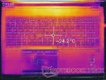 (-) The average temperature of the palmrest area of similar devices was 27.8 °C / 82 F (-5.2 °C / -9.4 F).