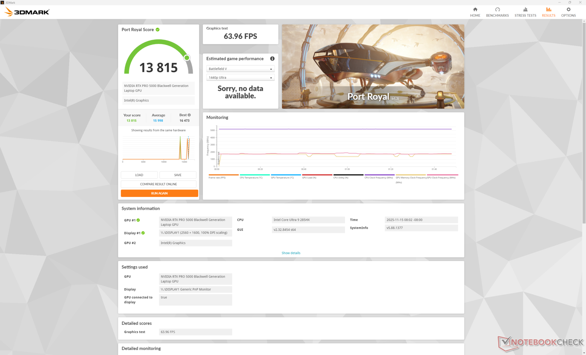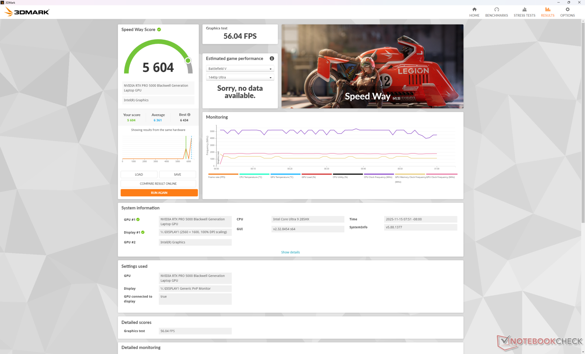 我们的特定测试机配置了酷睿 Ultra 9 285HX CPU、150 W Nvidia RTX Pro 5000 Blackwell GPU 和 64 GB DDR5-5600 内存,零售价约为 9000 多美元。目前,所有 SKU 均配备相同的 2560 x 1600p 165 Hz IPS 显示屏。