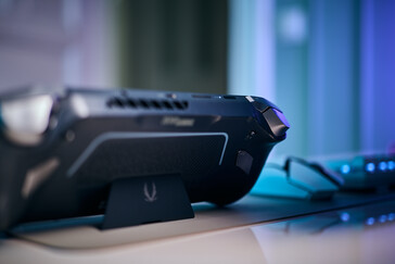 触摸板下方还有三个按钮。左边的按钮可以启动 Zotac Zone Launcher。右边的两个按钮可分配各种功能,如最小化应用程序、调用叠加菜单或 Windows 安全屏幕(任务管理器等)。在设备的背面,Zotac Zone 有两个可自由编程的按钮,可根据用户的需要进行单独调整。模拟摇杆周围有旋转旋钮,可惜不能用于游戏控制。相反,它们可用于控制音量、屏幕亮度和 RGB 灯光。