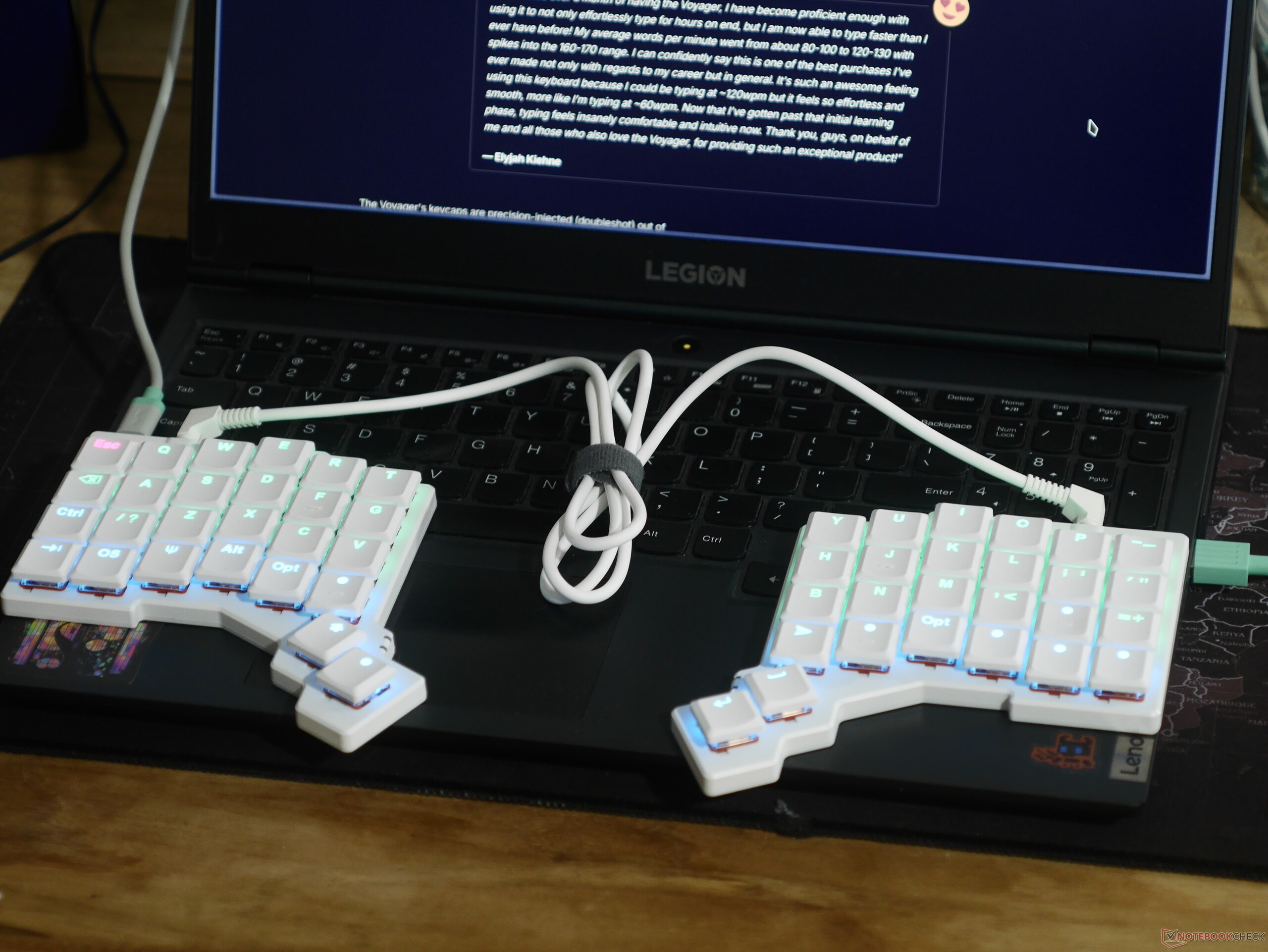 作为我的第一款分体式和柱状交错键盘,Voyager 的适应期相当短,准确性和肌肉记忆很快就恢复了,但要达到我通常每分钟 85 次左右的键入速度还是个挑战。不过,由于可以将两半键盘分开与肩同宽,因此长时间打字也非常舒适,使用 Voyager 之后,我很难再使用板式键盘。使用过 40% 的键盘,比如 我之前评测过的我已经熟悉了更小的布局,因此我使用 Oryx 对布局进行了自定义,取消了数字行,在最下面一行设置了一组修改键。