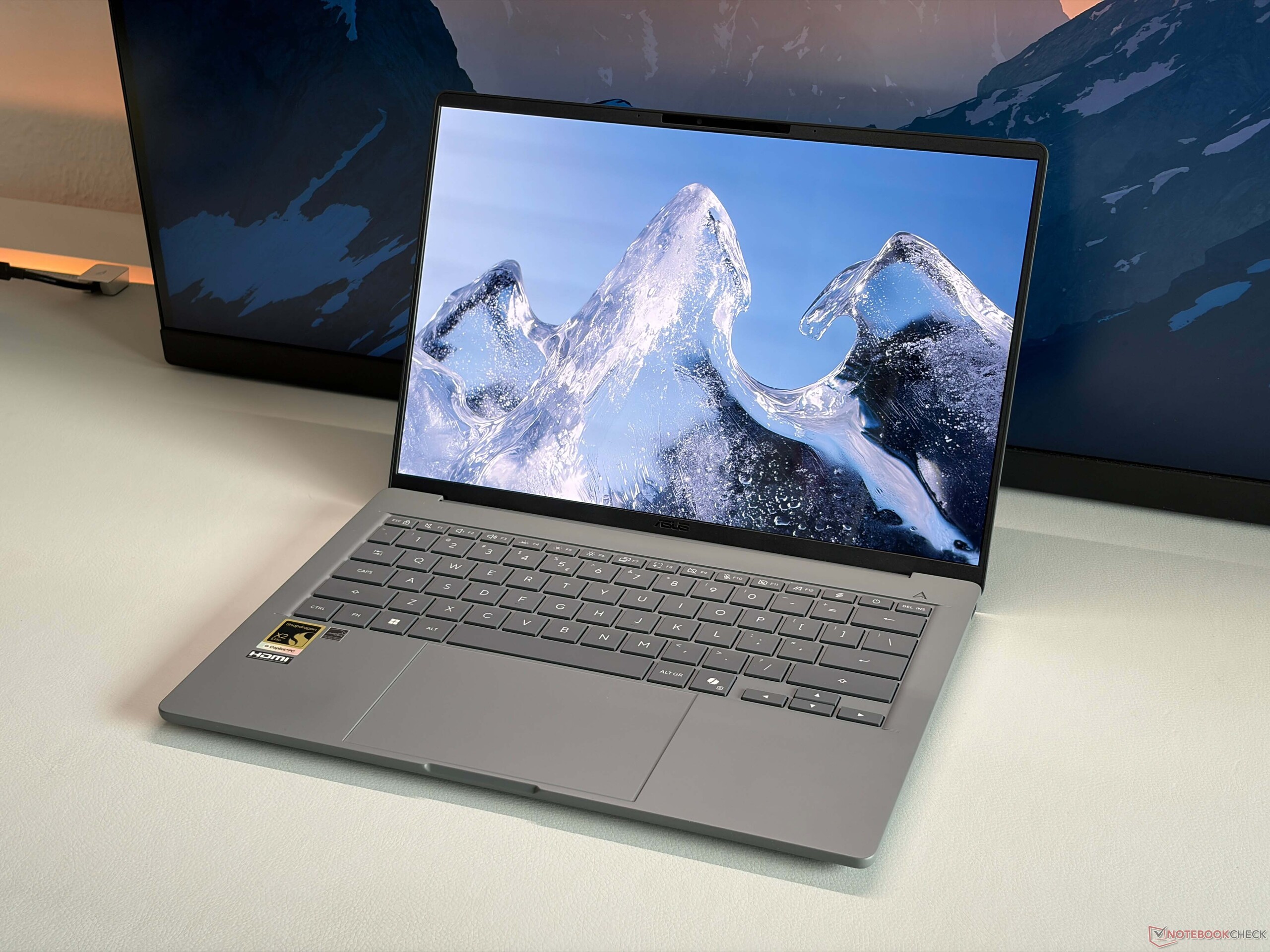 更新后的华硕 Zenbook A14 再次成为一款非常便携的 14 英寸笔记本电脑,电池续航时间长,但新加入的骁龙 X2 Elite 处理器将整体性能提升到了一个全新的水平。即使使用几乎听不到声音的Whisper 型号,它的 CPU 性能也超过了英特尔或 AMD 芯片的任何其他直接竞争对手。GPU 性能也非常出色,效率极高。1200p OLED 仍被限制在 60 Hz,但仍能提供非常好的图像质量。