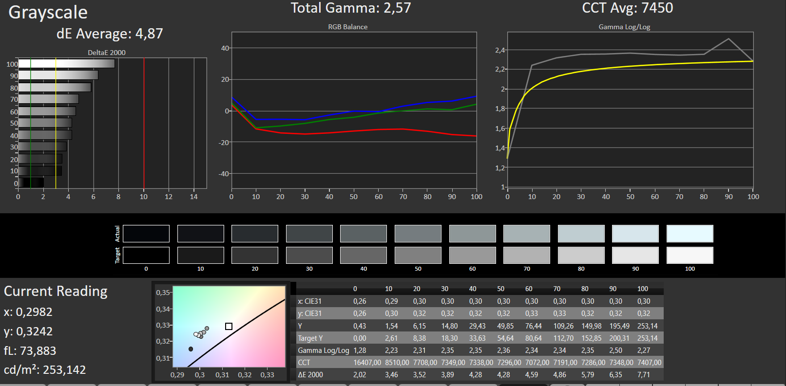 ΔE Greyscale Calman: 4.87 | ∀{0.09-98 Ø5}