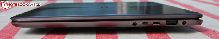 相比平板电脑,UX360CA提供了更多的接口。根据需要不同,这可能并不一定是个优势。联想 IdeaPad Miix 700提供了一个全尺寸的A型USB接口和一个micro-HDMI,而惠普 Spectre x2 12则搭配了两个USB-C接口,但是没有独立视频输出接口。