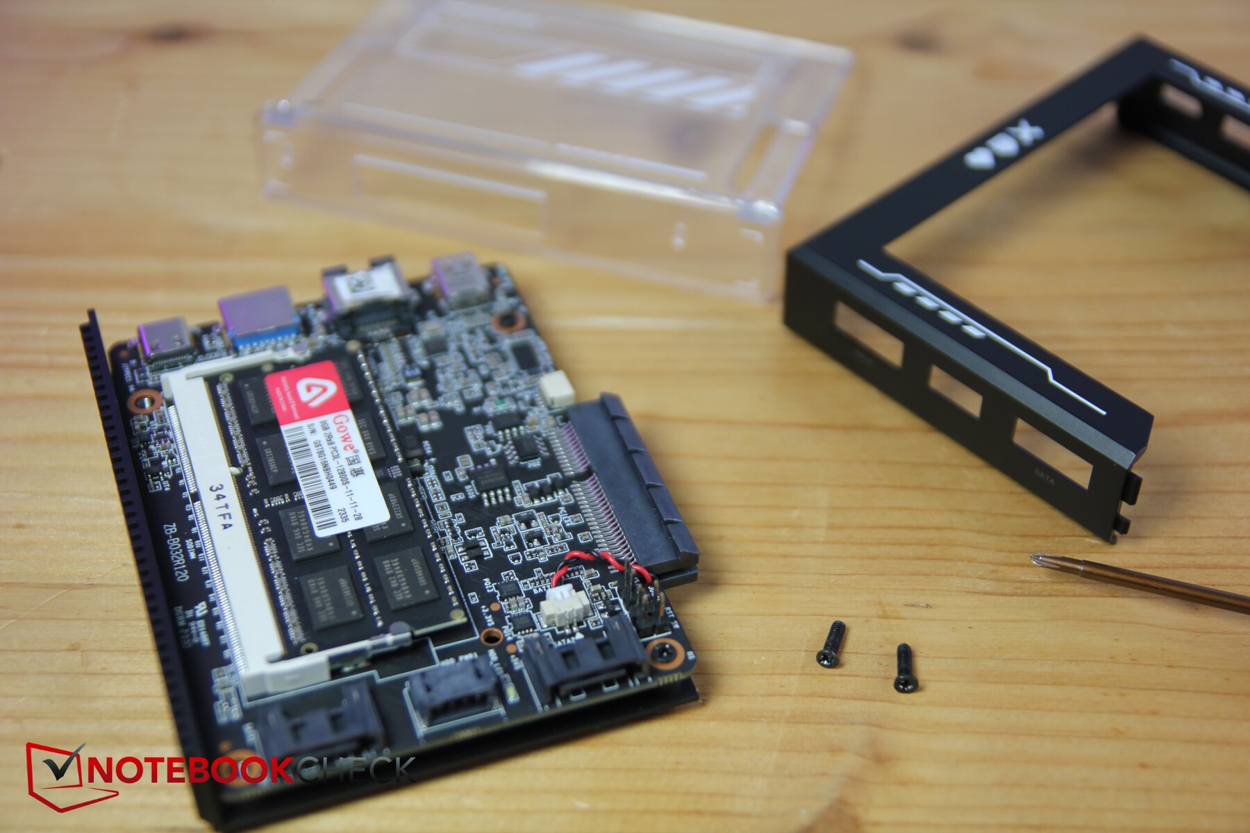 当然,PCIe 端口(2.0,4 通道)仍然是一大亮点,即使是Raspberry Pi 5 也不具备 4 通道。所有类型的扩展卡都可以使用,甚至是 GPU。遗憾的是,Zimablade 也继承了 Zimaboard 的问题,因为插槽盖和外壳尺寸不匹配,所以无法安装有插槽盖的扩展卡。因此,这涉及到拆卸盖子的繁琐工作。IceWhale 寄给我们的一些产品不带插槽盖,但对于其他产品,我们必须自己拆卸插板(2 个螺丝)。
